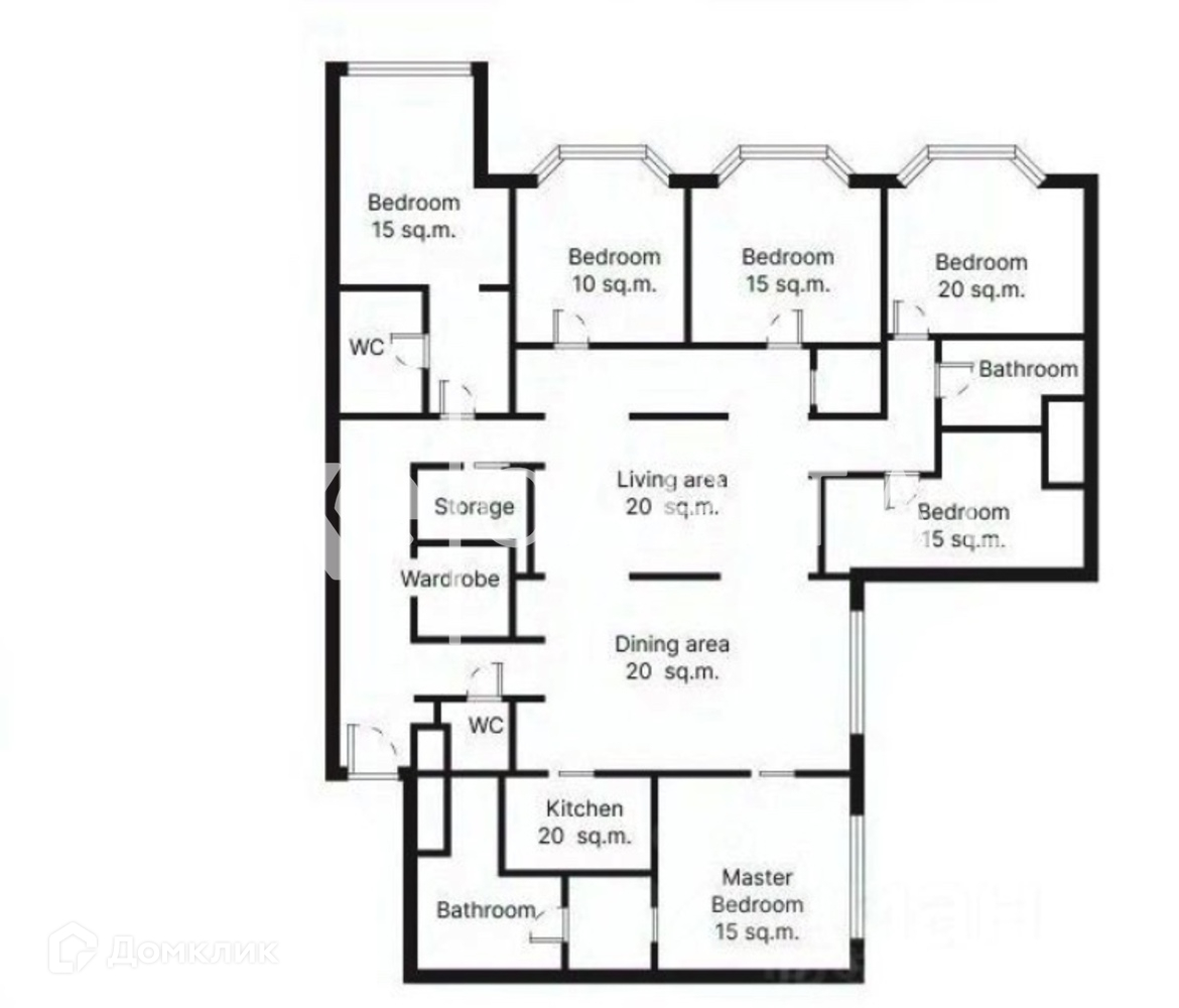 Планировка: изолированная кухня, просторная гостиная,  2 главные спальни, 3 детских комнаты, кабинет. Всего 3  совмещенных санузла с ванной и душевой кабиной, 1 гостевой санузел.