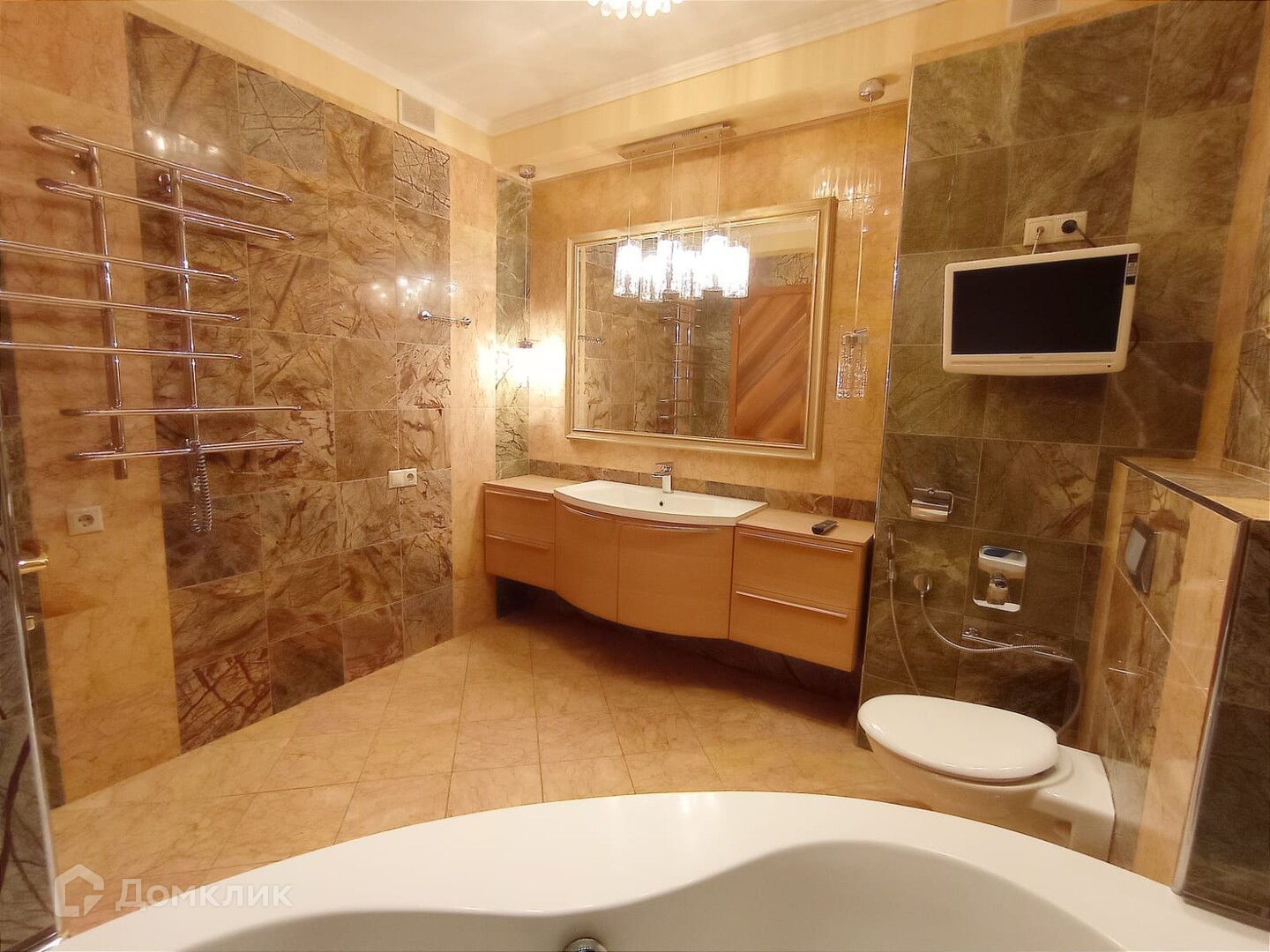 Дизайнерский ремонт с отделкой мрамором,деревом, кухня Tomassi.