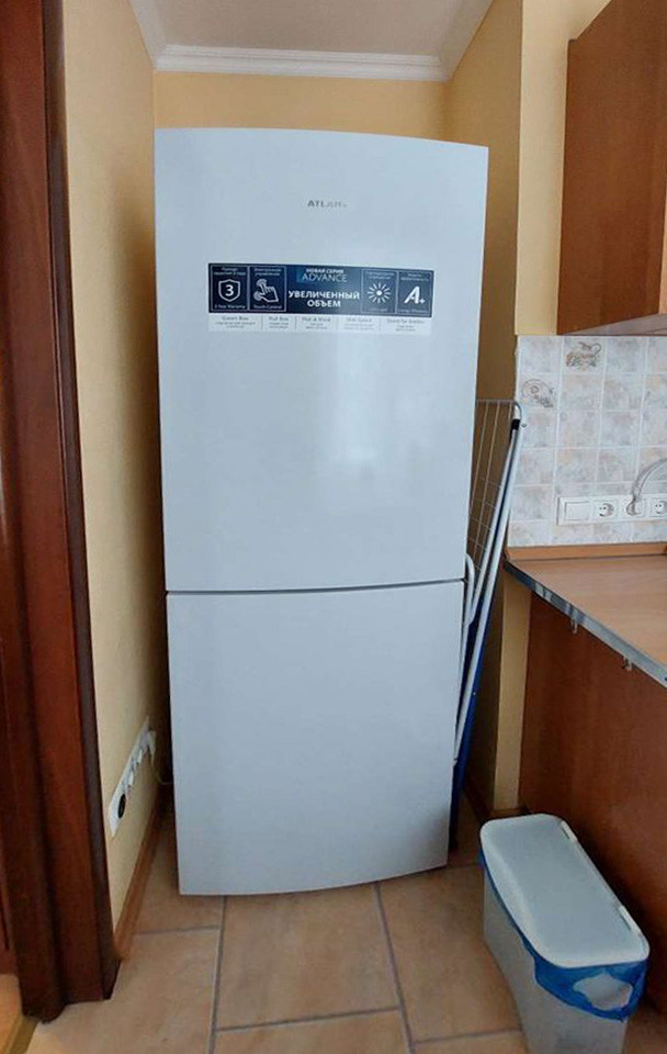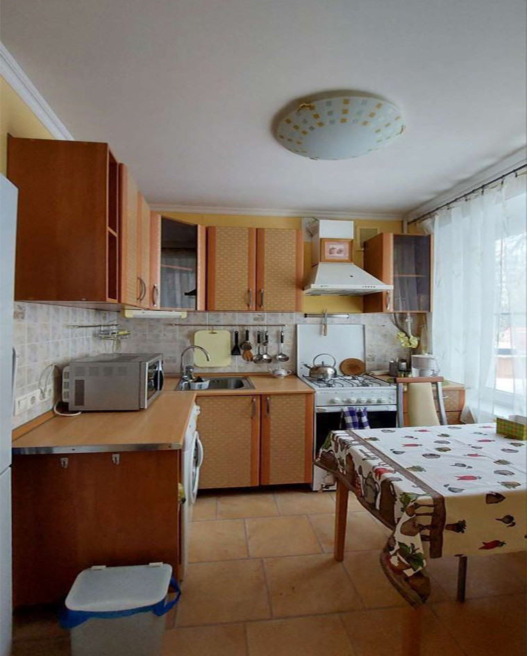 В уютной кухне - функциональное рабочее место, оснащенное современной бытовой техникой, включая газовую плиту, вытяжку, новый двухкамерный холодильник, СВЧ, стиральную машину.
