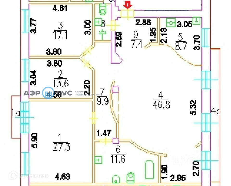 Жилая площадь 104.8 м2