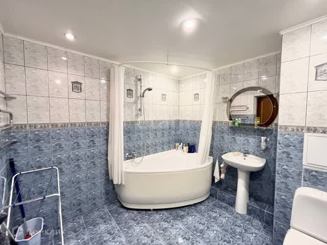 - Просторный совмещенный санузел с угловой ванной.