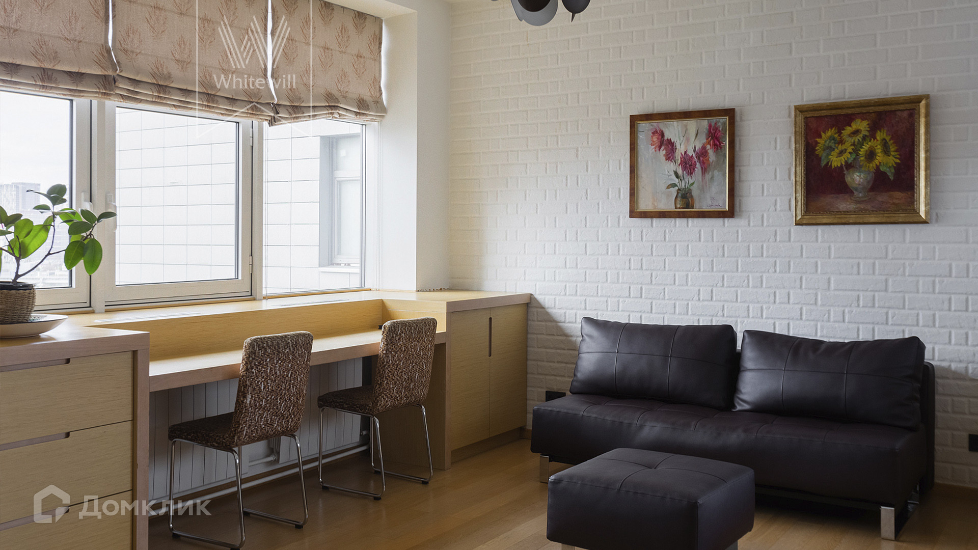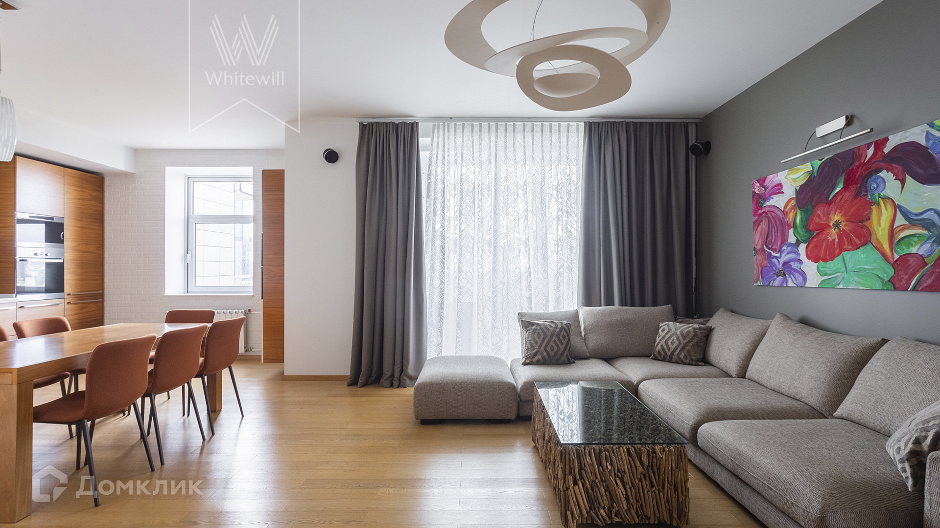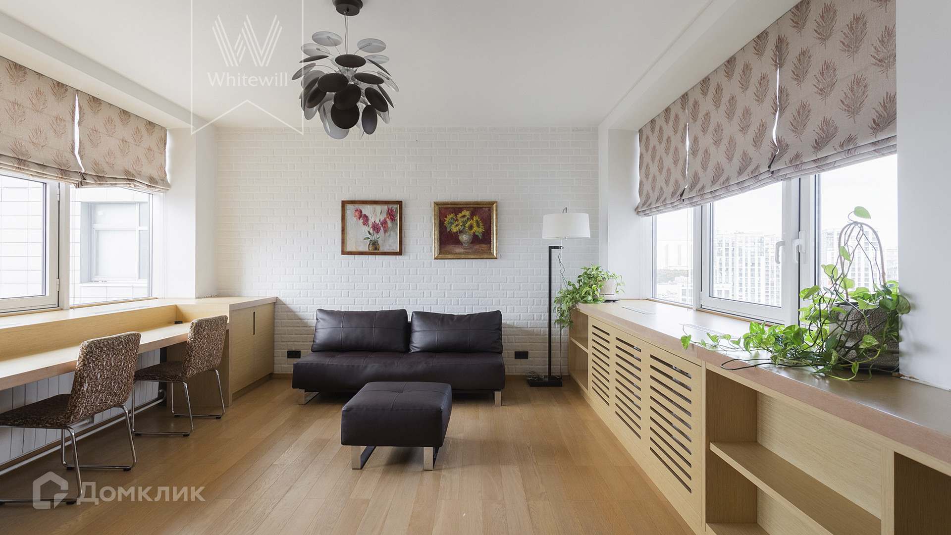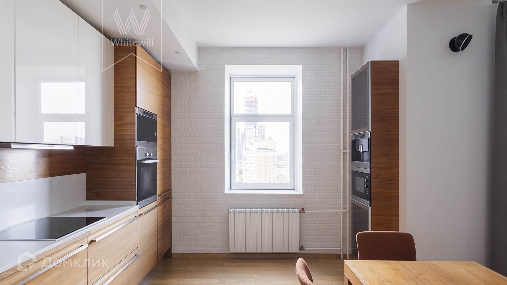 ID 1 801. С коллегами работаем 50/50. Квартира с 2-мя спальнями общей площадью 140 м² на 17 этаже элитного комплекса на берегу реки. В квартире с потолками 3 метра выполнен современный ремонт в уникальном авторском стиле с использованием дерева и кирпичной кладки. Квартира полностью с мебелью и встроенной бытовой техникой, включая посудомоечную машину.  В кухне-гостиной с балконом установлен угловой диван и домашний кинотеатр, а в зоне кухни — обеденный стол на 8 персон и кофейная зона у окна. Из гостиной можно попасть в кабинет. Дополнительно спланированы 2 уютные спальни и 2 санузла. В квартире проведена приточно-вытяжная система вентиляции и кондиционирования. В санузлах установлен бойлер, душевая кабина, ванна и уложен подогрев полов. Из окон открываются виды на реку и «Москву-сити». Машиноместо в подземном паркинге входит в стоимость аренды.