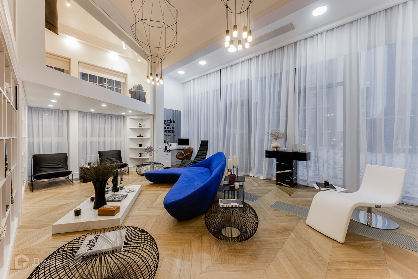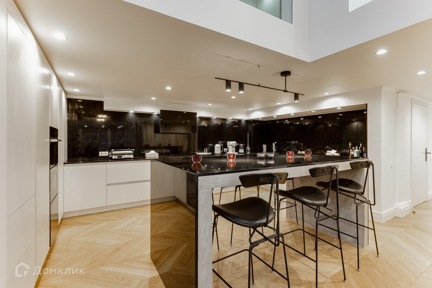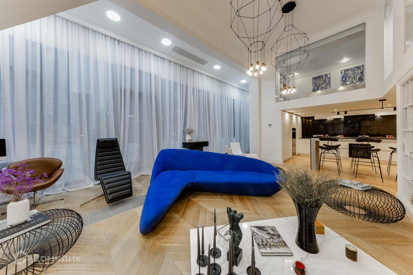 Двухуровневая квартира с отделкой премиум уровня. Полностью меблирована и декорирована в современном стиле. 1 ур.: прихожая, холл, мастер-спальня с гардеробной и ванной комнатой, гостевая спальня с санузлом, гостевой санузел, игровая, гостиная со вторым светом и выходом на балкон. 2 ур.: холл, 2 детские спальня с санузлами, гостевая спальня с санузлом.