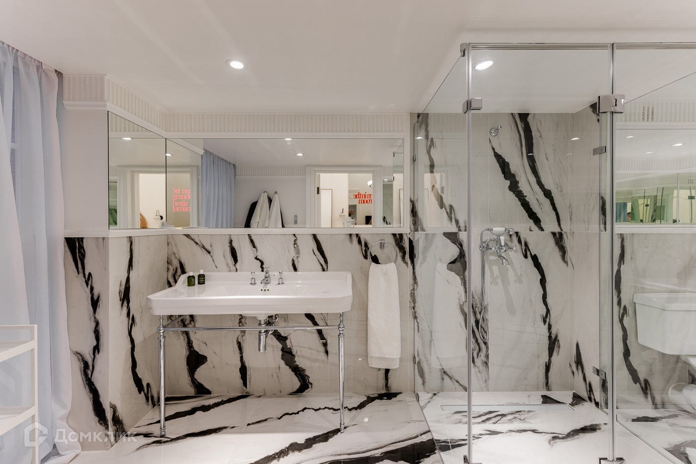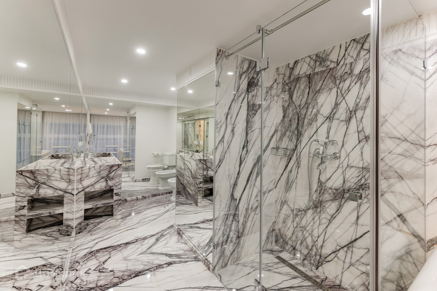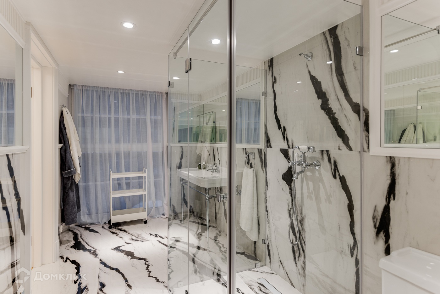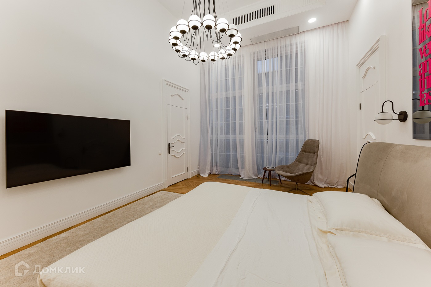 Двухуровневая квартира с отделкой премиум уровня. Полностью меблирована и декорирована в современном стиле. 1 ур.: прихожая, холл, мастер-спальня с гардеробной и ванной комнатой, гостевая спальня с санузлом, гостевой санузел, игровая, гостиная со вторым светом и выходом на балкон. 2 ур.: холл, 2 детские спальня с санузлами, гостевая спальня с санузлом.
