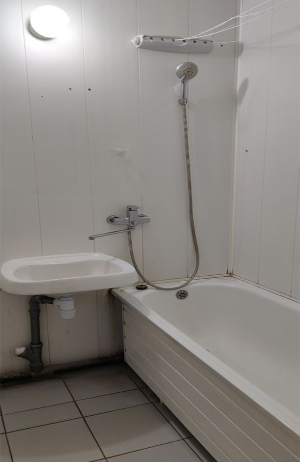 Совмещенный санузел со стиральной машиной и плиткой в потолок. Ухоженный подъезд. Теплый дом серии П-44Т с хорошей шумоизоляцией. Во дворе предусмотрена игровая  и спортивная площадка и парковочное пространство.
