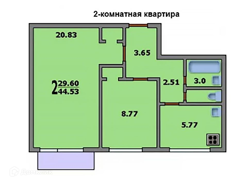 Общая площадь 44.5 м2