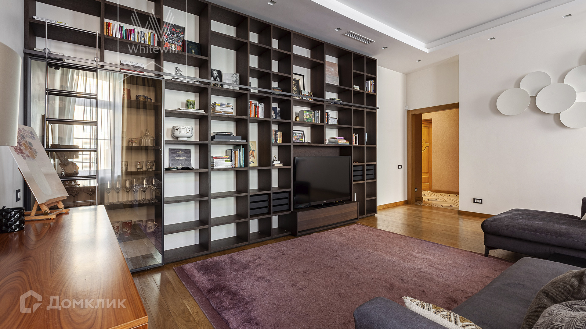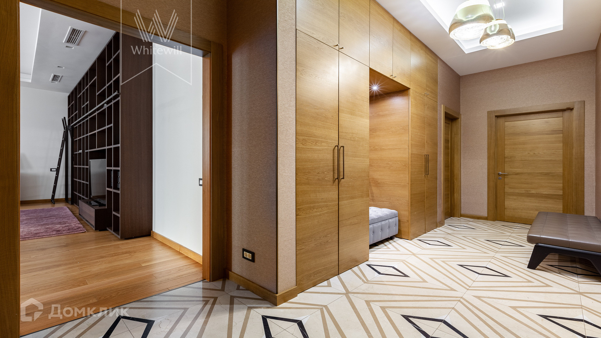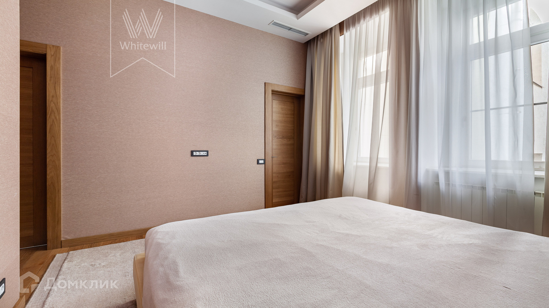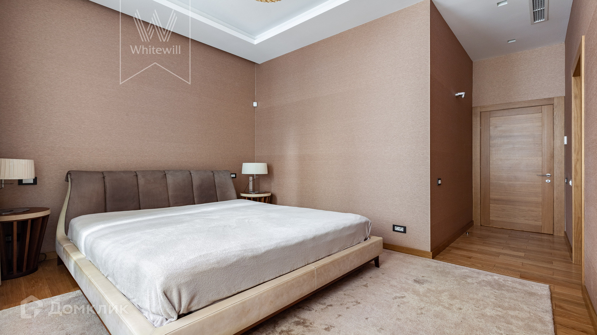 Планировка: просторная гостиная-кухня с обеденной зоной на 6-8 персон и библиотекой, мастер-спальня с гардеробной и ванной комнатой (с душевой и джакузи), блок из двух комнат свободного назначения с ванной комнатой (комнаты могут использоваться как детская, гостевая спальня, кабинет, гардеробная), холл и гостевой санузел, постирочная. У подъезда есть платная городская парковка.