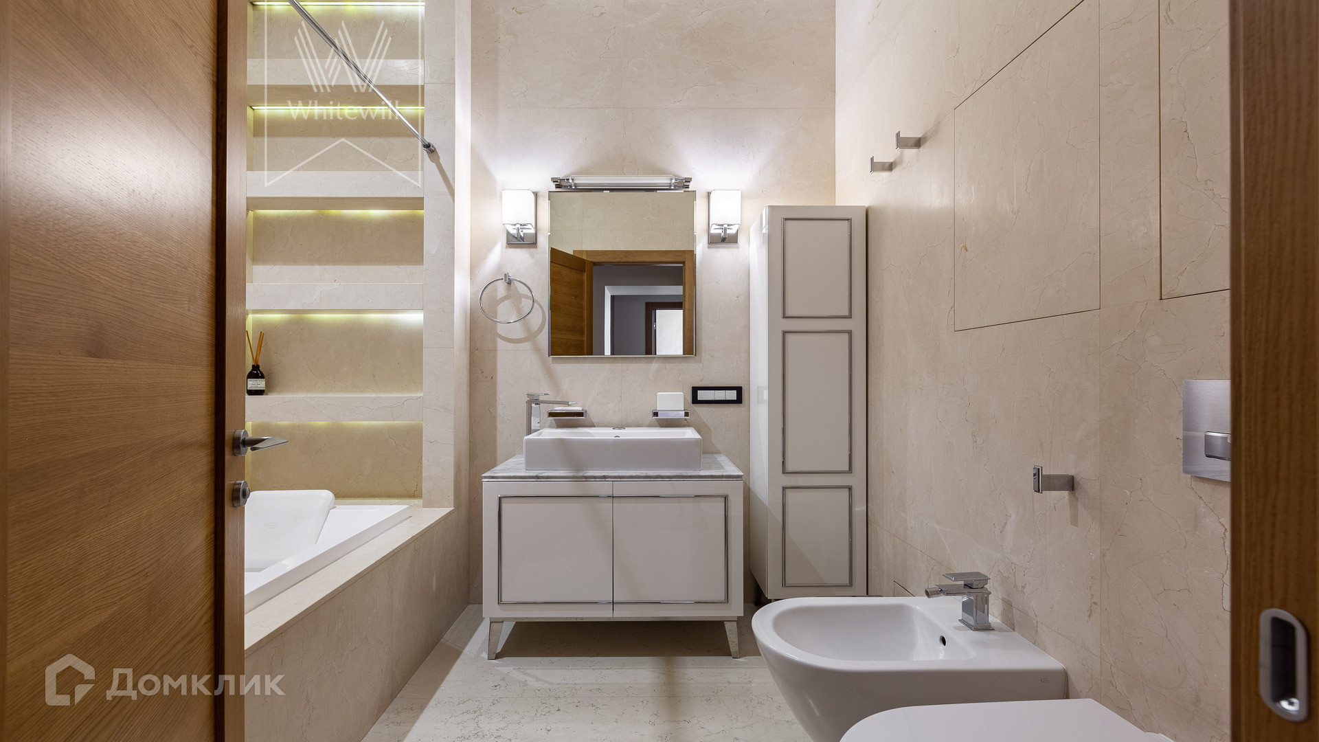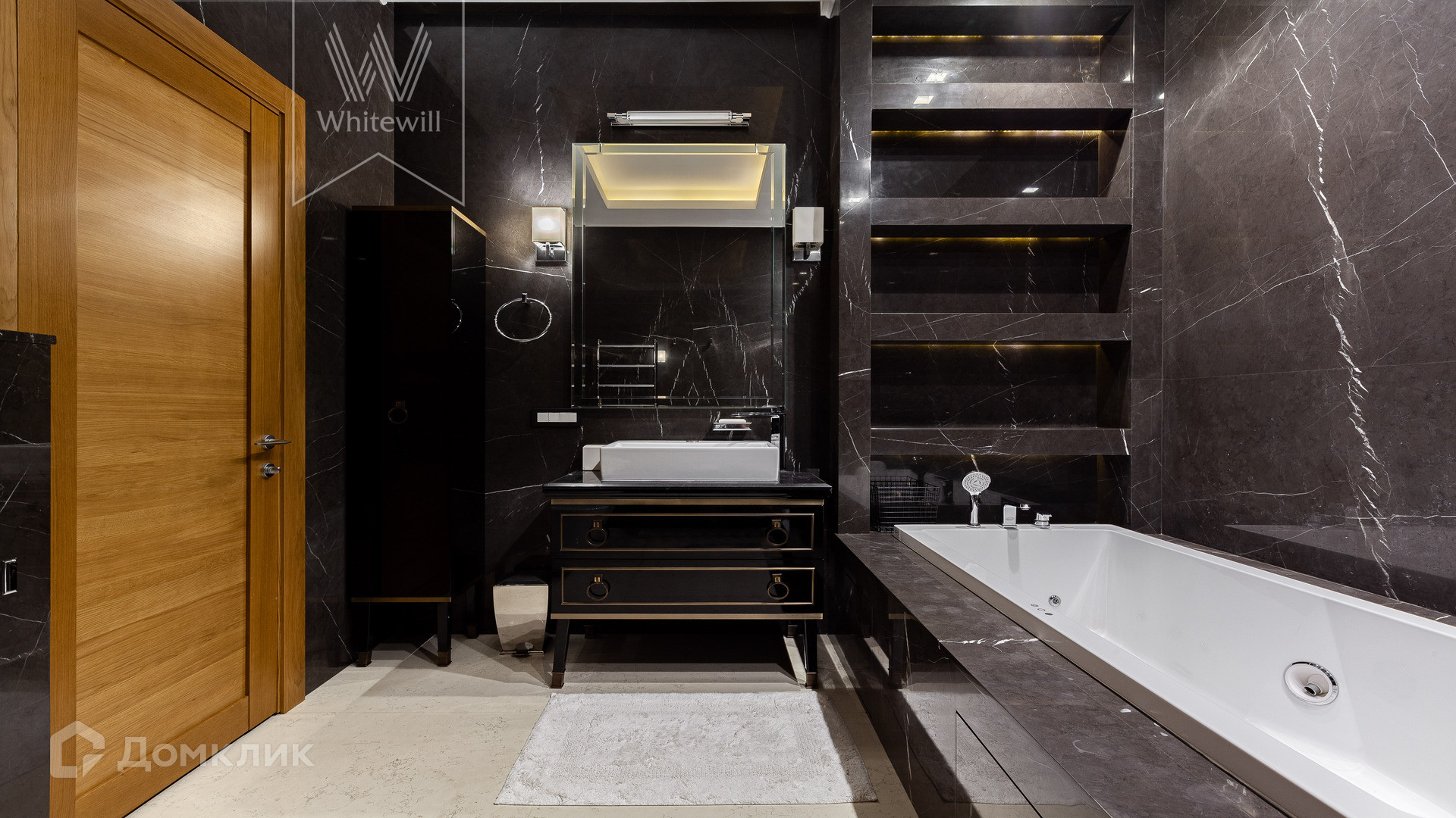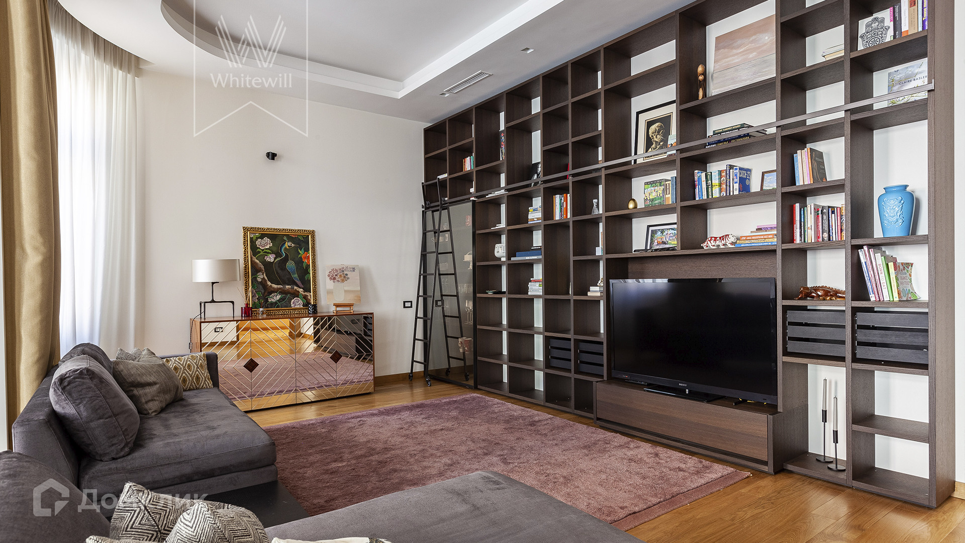 Планировка: просторная гостиная-кухня с обеденной зоной на 6-8 персон и библиотекой, мастер-спальня с гардеробной и ванной комнатой (с душевой и джакузи), блок из двух комнат свободного назначения с ванной комнатой (комнаты могут использоваться как детская, гостевая спальня, кабинет, гардеробная), холл и гостевой санузел, постирочная. У подъезда есть платная городская парковка.