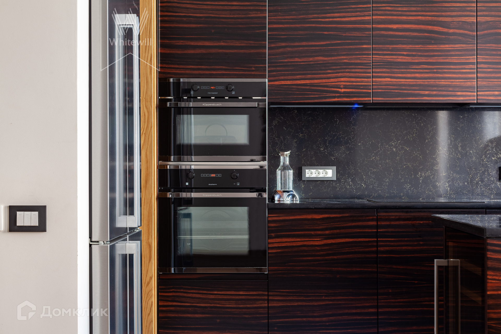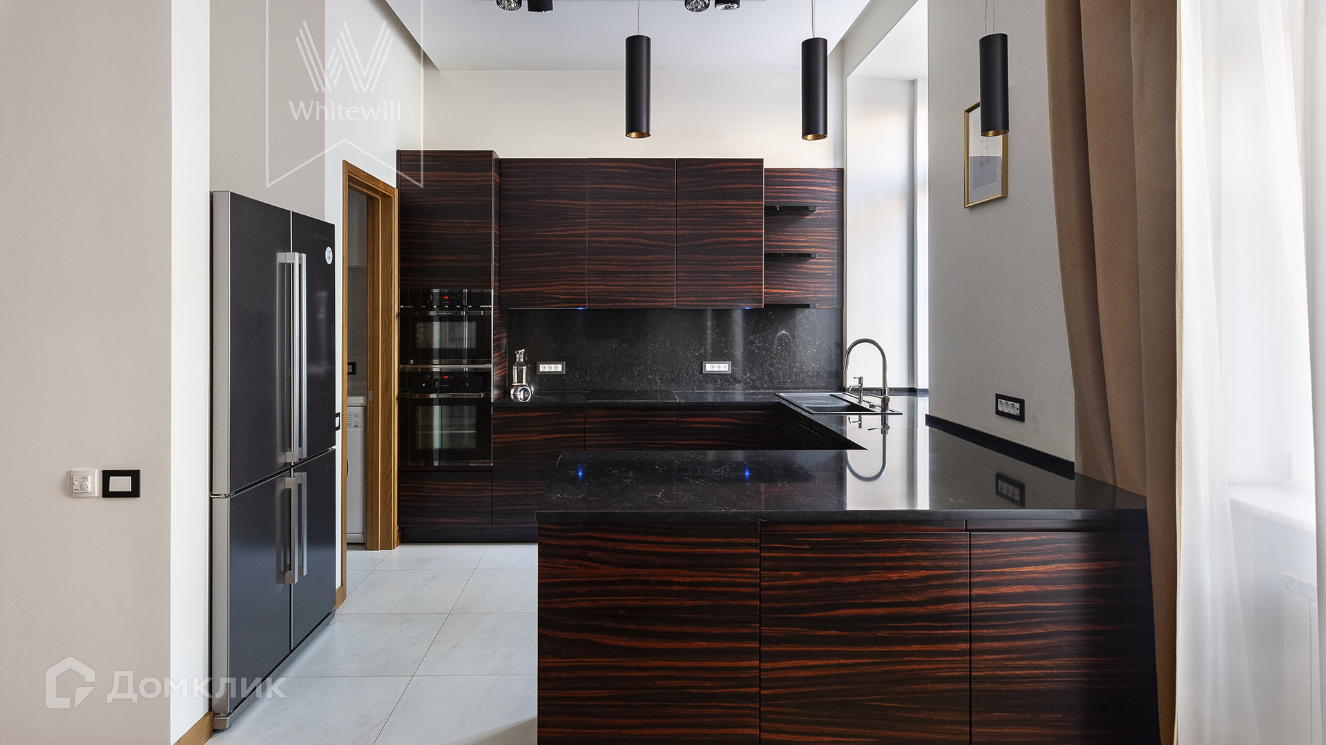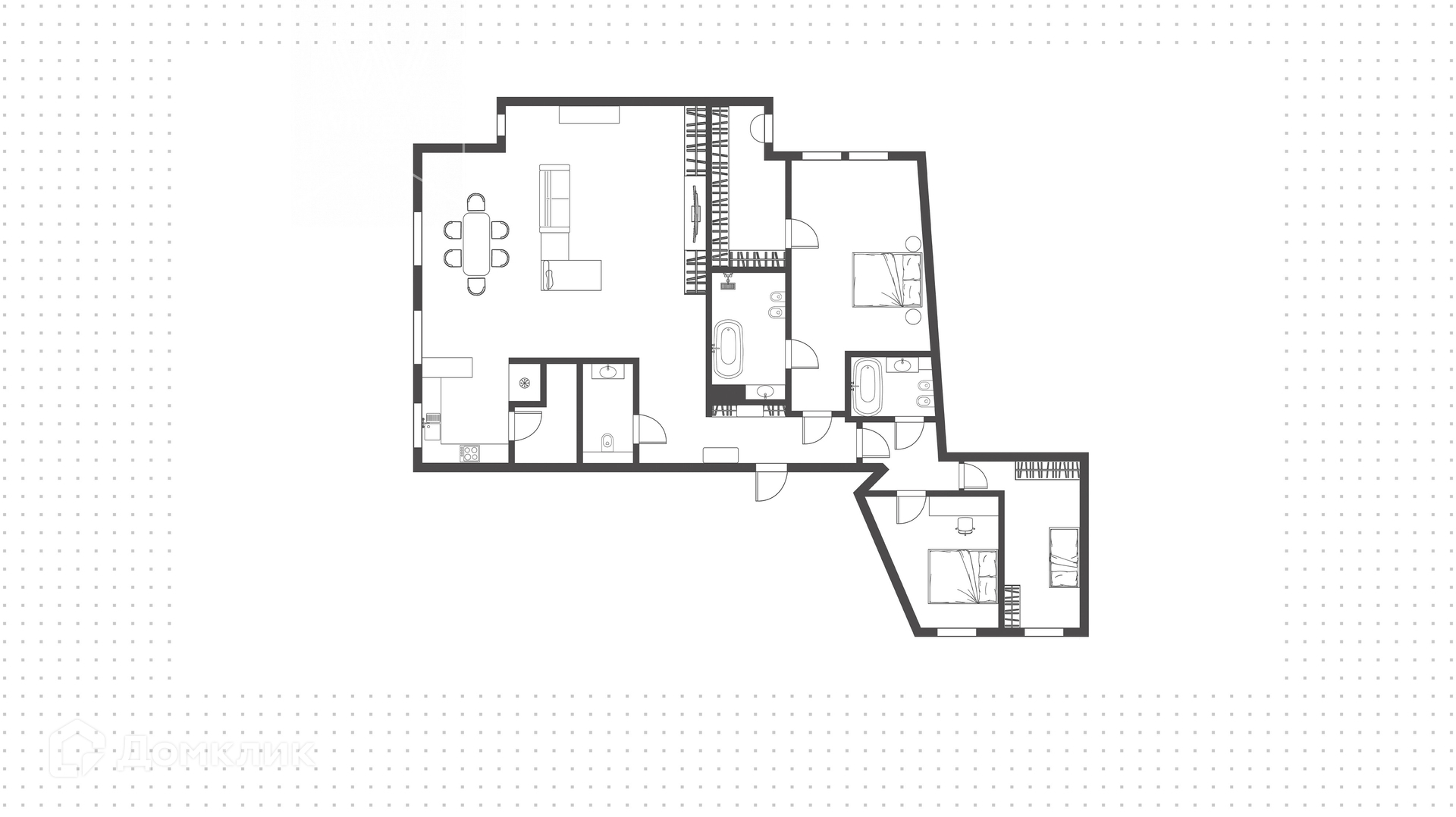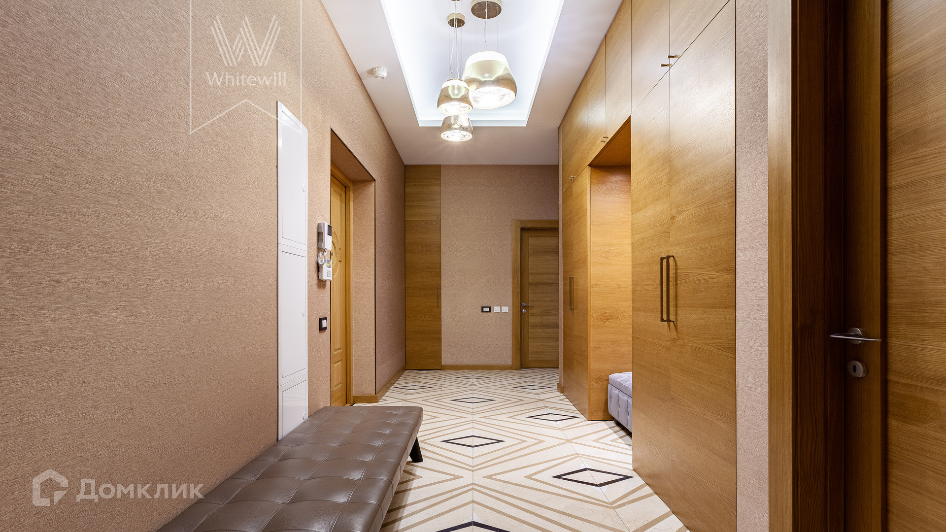 Планировка: просторная гостиная-кухня с обеденной зоной на 6-8 персон и библиотекой, мастер-спальня с гардеробной и ванной комнатой (с душевой и джакузи), блок из двух комнат свободного назначения с ванной комнатой (комнаты могут использоваться как детская, гостевая спальня, кабинет, гардеробная), холл и гостевой санузел, постирочная. У подъезда есть платная городская парковка.