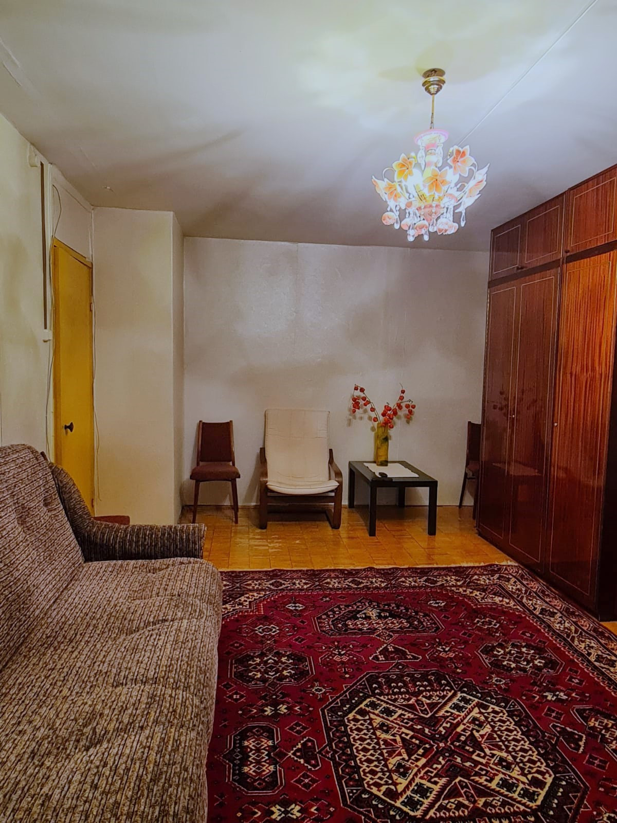 Квартира полностью обустроена для Вашего комфортного проживания. На кухне: кухонный гарнитур, газовая варочная панель с духовым шкафом, двухкамерный холодильник и обеденная зона. В комнате: удобный двуспальный диван, кресло, большая стенка для хранения, телевизор и выход на застекленный балкон. Санузел совмещен, чисто и аккуратно, стоит стиральная машинка. В прихожей есть кладовая. Окна выходят во двор. Подъезд чистый и аккуратный.