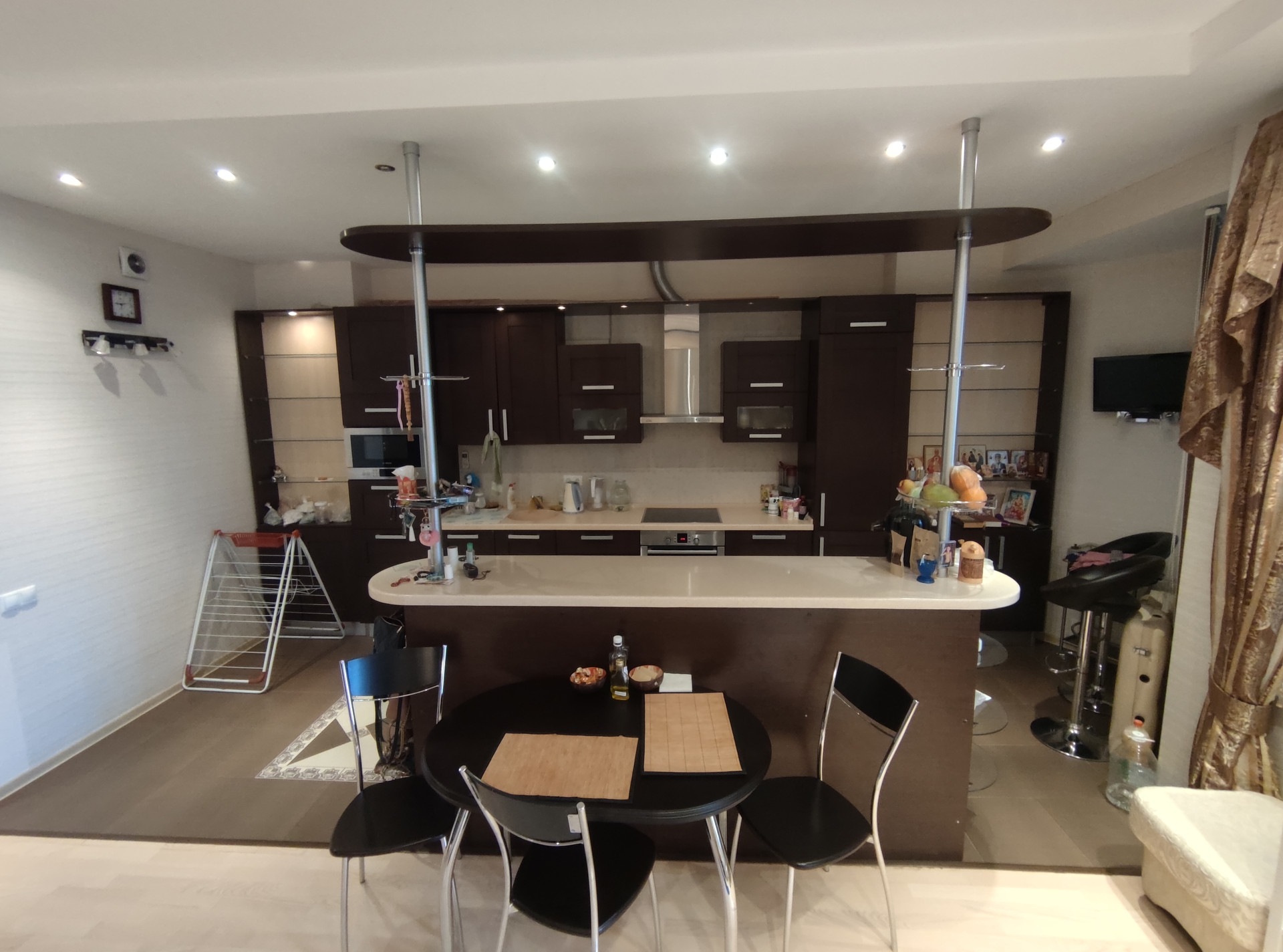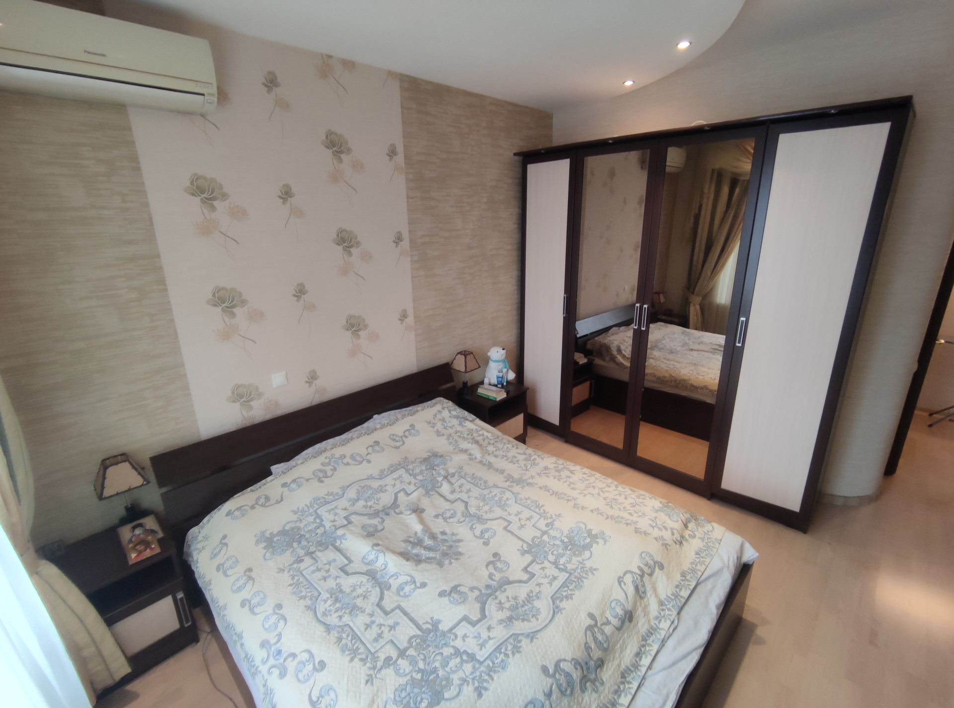 Функциональна планировка: гостевой санузел с душевой кабиной,  кухня-гостиная с выходом на панорамный балкон 50 м2, поделенная на зоны, рабочая зона, зона кухни, зона отдыха. Спальня, с 2-х спальная кровать, с хорошим ортопедическом матрасом, кондиционер.