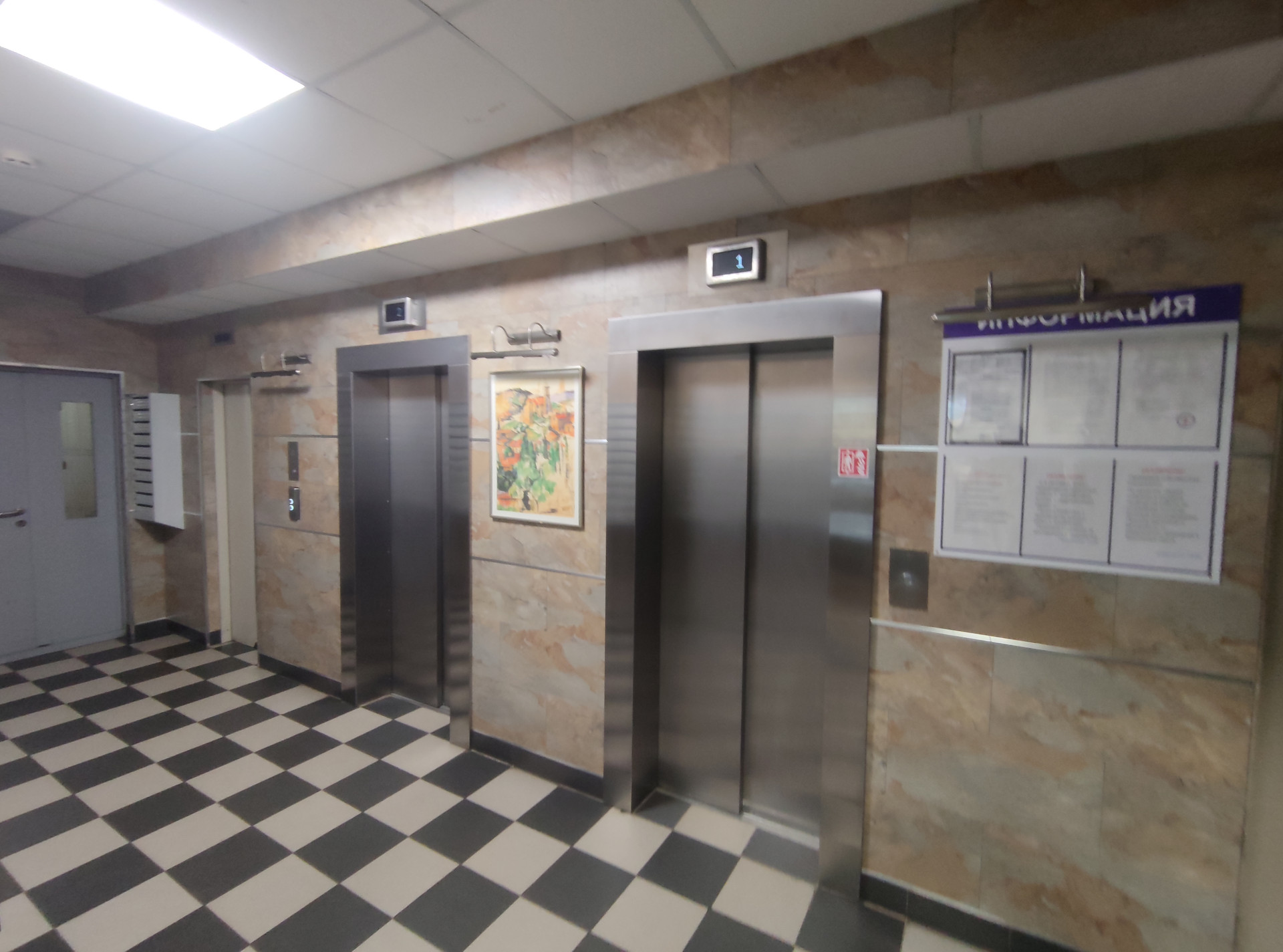 В доме 3 лифта (пассажирский и 2 грузовых). Тамбурная дверь для квартир на этаже.