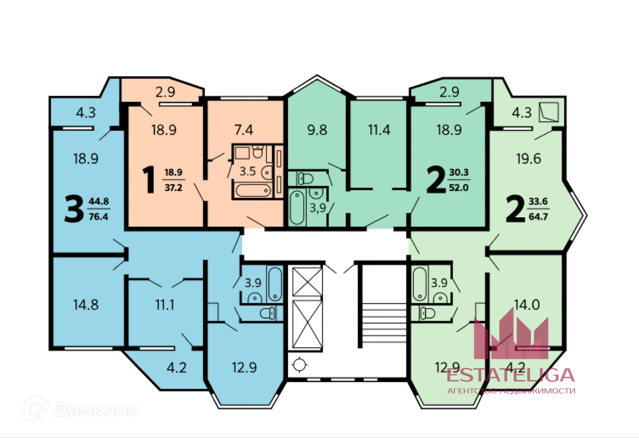 Общая площадь 52 м2