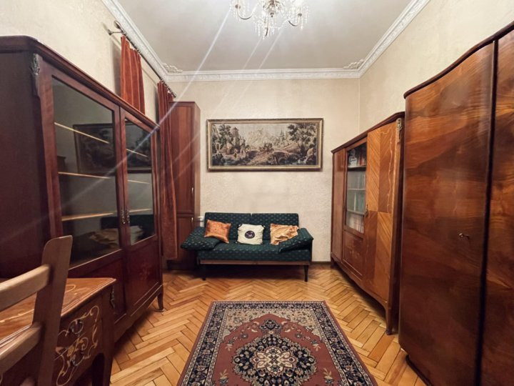 В квартире есть всё для комфортного проживания, она полностью укомплектована бытовой техникой и мебелью- большая гостиная, спальня и кабинет с рабочим местом. Высокие потолки с лепниной, мебель в квартире сделана преимущественно из натурального дерева. Имеется телевизор со Smart TV с голосовым поиском в гостиной, кондиционеры на кухне и в спальне, настроенное пианино. Также на кухне для вашего удобства располагается посудомоечная машина, микроволновая печь, встроенная духовка и плита. В ванной стиральная машина.