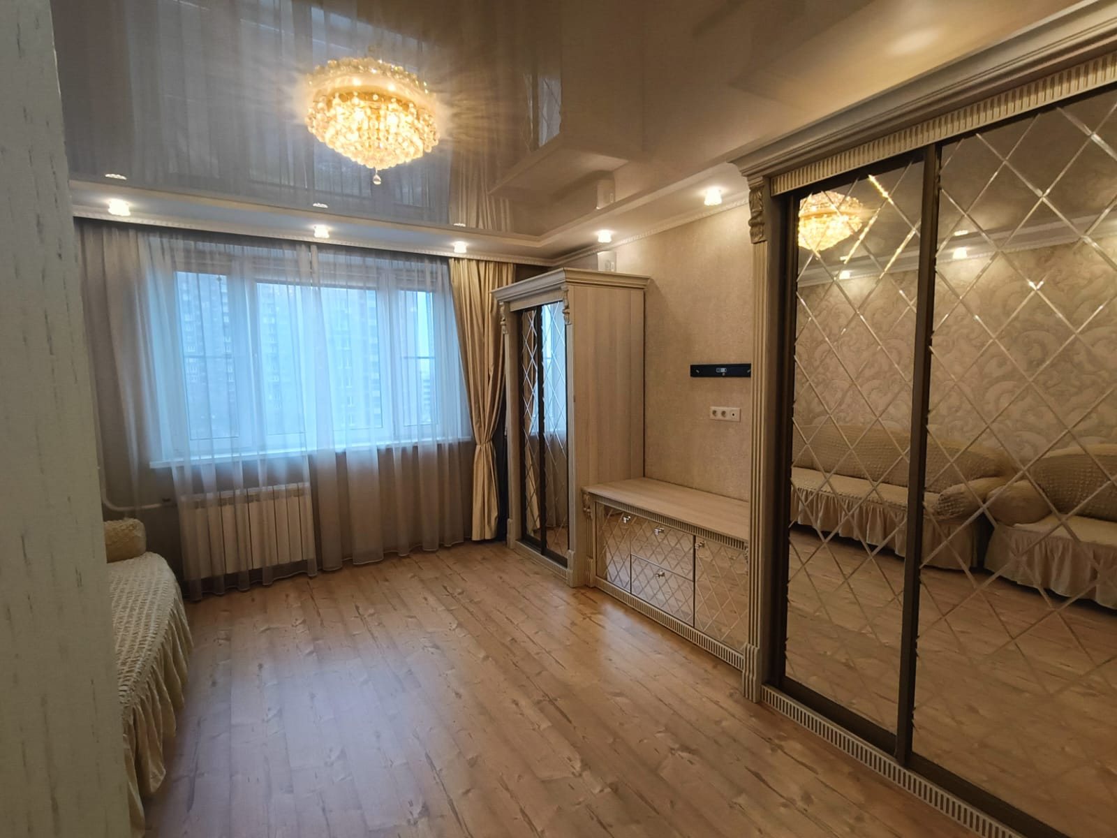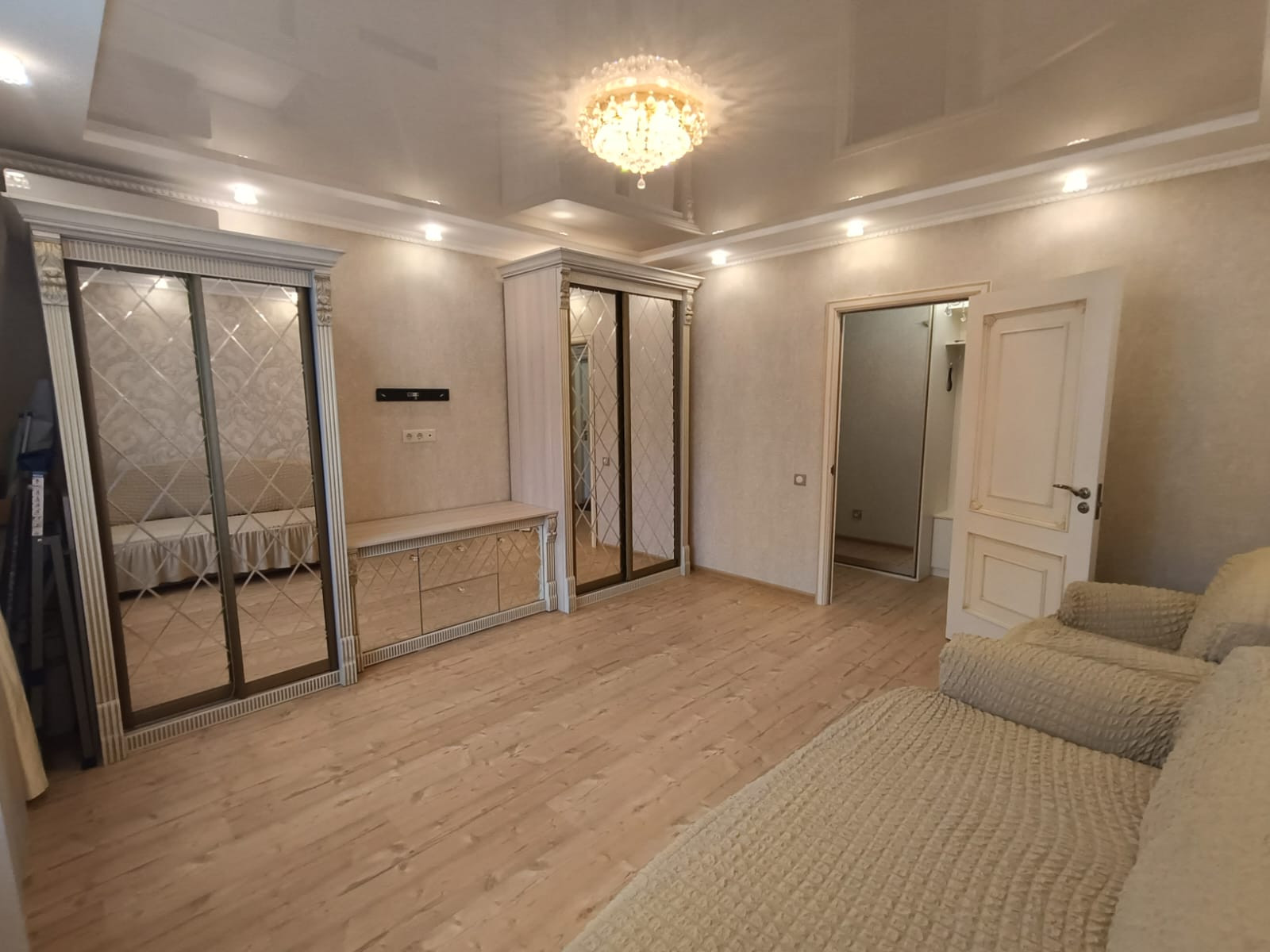 - две изолированные просторные комнаты 18 и 17 кв.м., оснащенные всем необходимым для проживания – двух спальная кровать, диван, кресло, телевизор и кондиционер, встроенный шкаф и большая функциональная стенка;