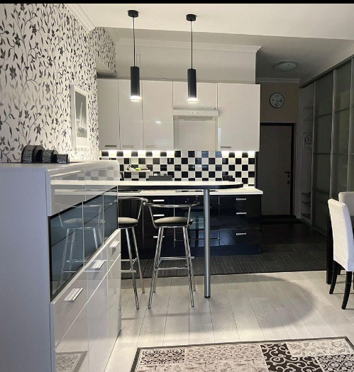 Для любителей эстетики и уюта присутствует множество вариаций подсветки комнат. Вместительный шкаф купе для одежды, дополнительное пространство в подъемном механизме кровати. Невозможно оставить без внимания удобства: новая посудомоечная машина Hyundai, кухонный измельчитель bone crusher, пылесос и стиральная машина Bosch, микроволновка, холодильник, телевизор и даже кондиционер. Кухня укомплектована предметами столовой утвари первой необходимости.