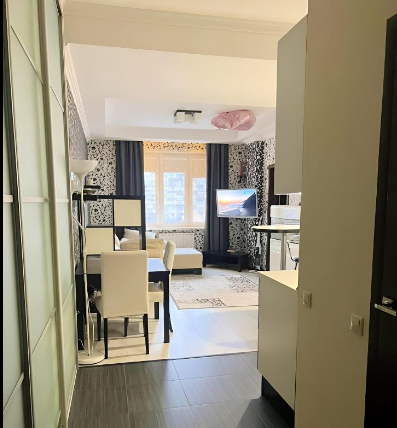 Квартира состоит из просторного зала, совмещенного с кухней, санузла, спальни с балконом. Несмотря на небольшую площадь, эргономика жилья продумана до мелочей для вашего комфорта. Квартира полностью меблирована и декорирована.
