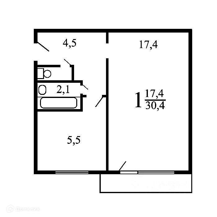 Балкон, лоджия 1 балкон
