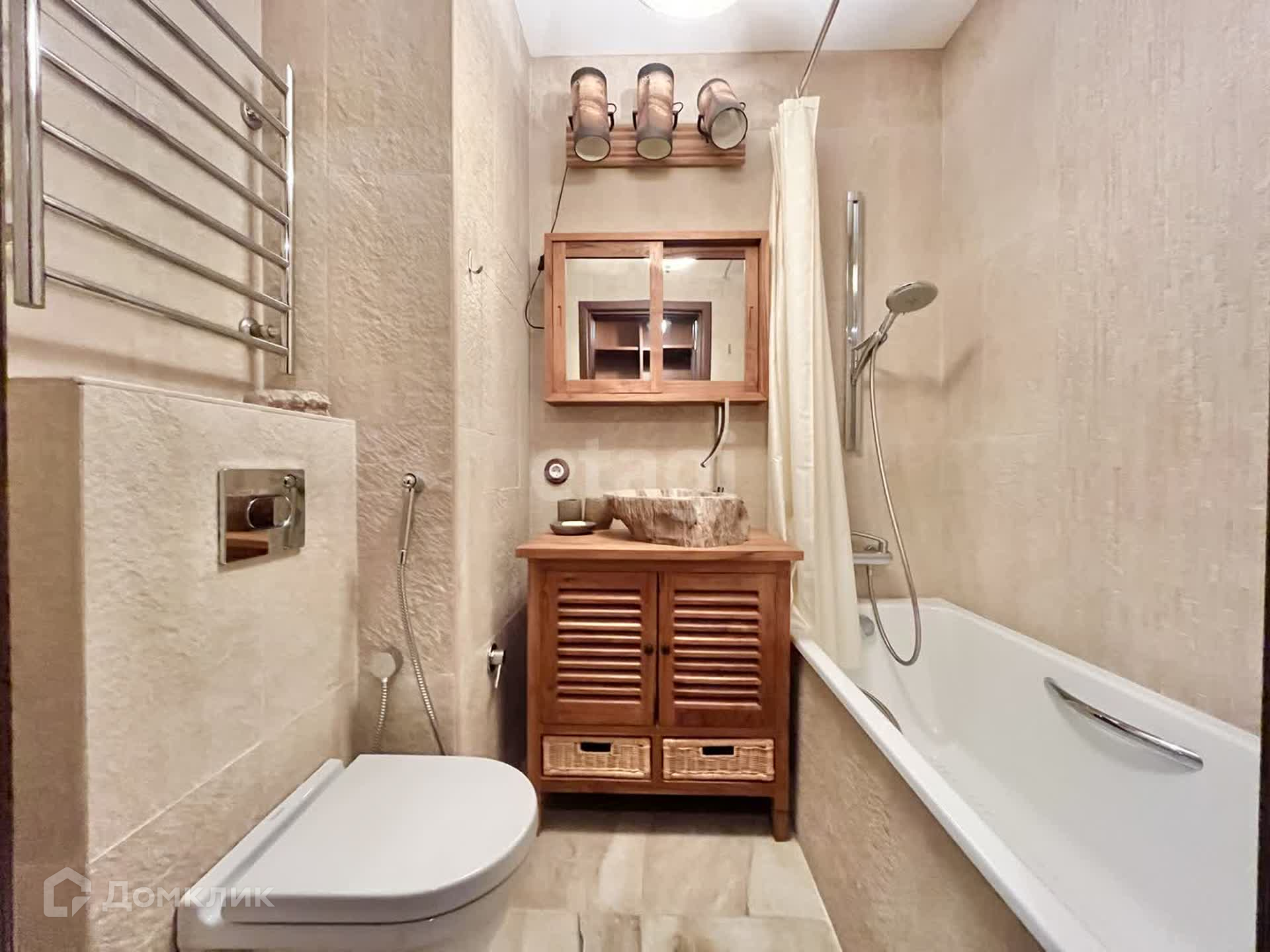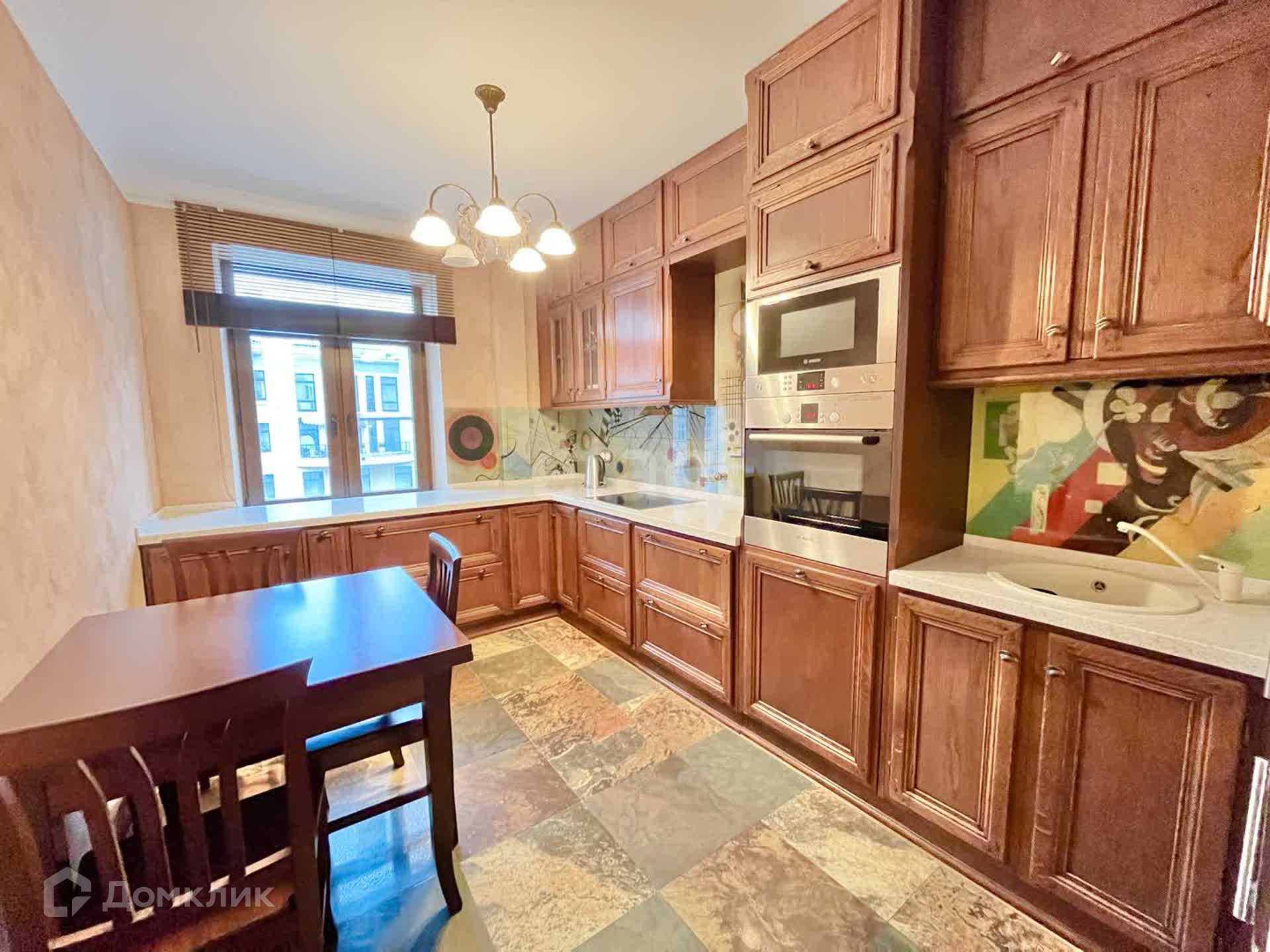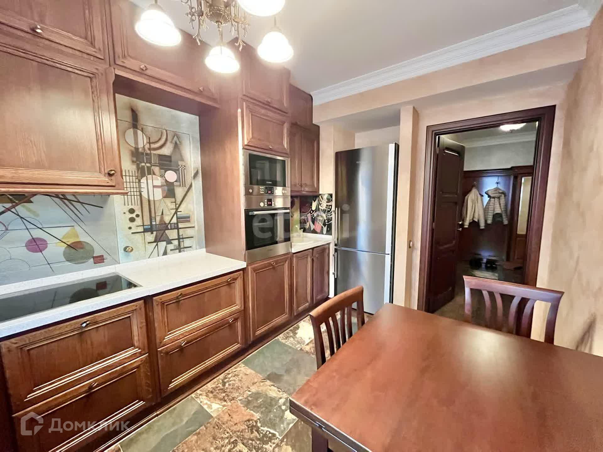 Ремонт в квартире выполнен из натуральных отделочных материалов. Кухонный гарнитур оснащен всей необходимой техникой: варочная панель, микроволновка, духовой шкаф, посудомоечная машина, холодильник, электрочайник. В комнатах установлены кондиционеры.