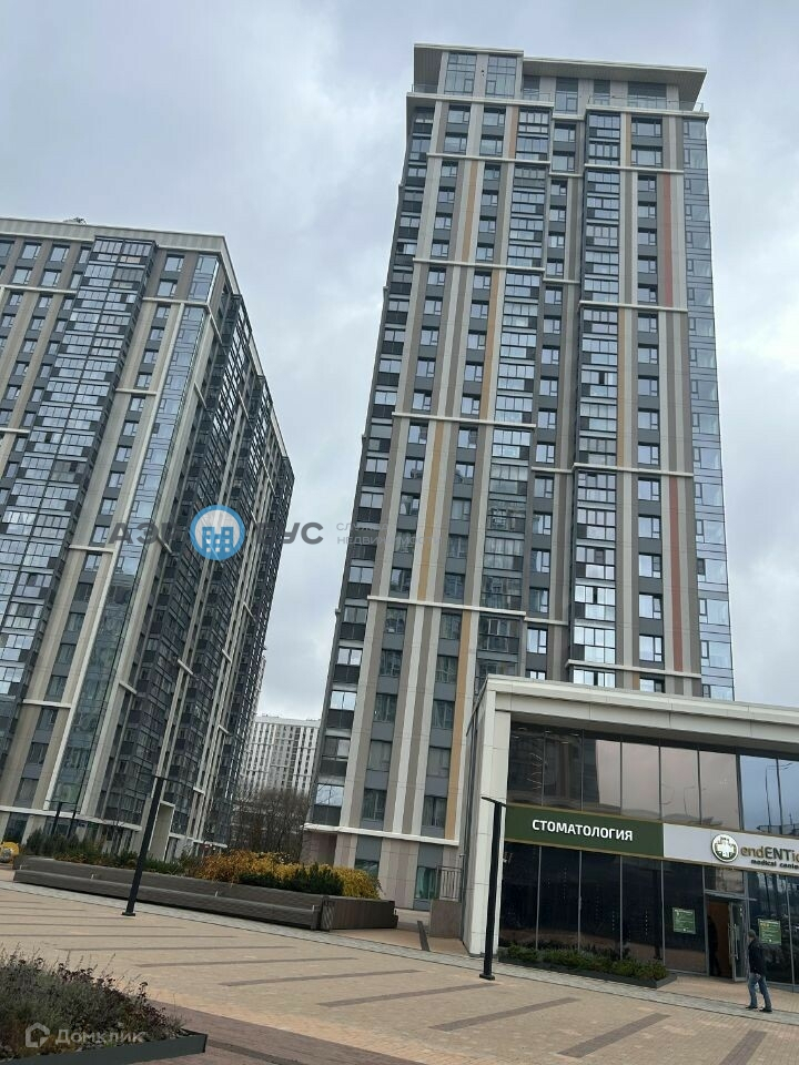 В доме просторная входная группа, три лифта, служба охраны, есть подземная парковка, много магазинов, кафе и салонов красоты.