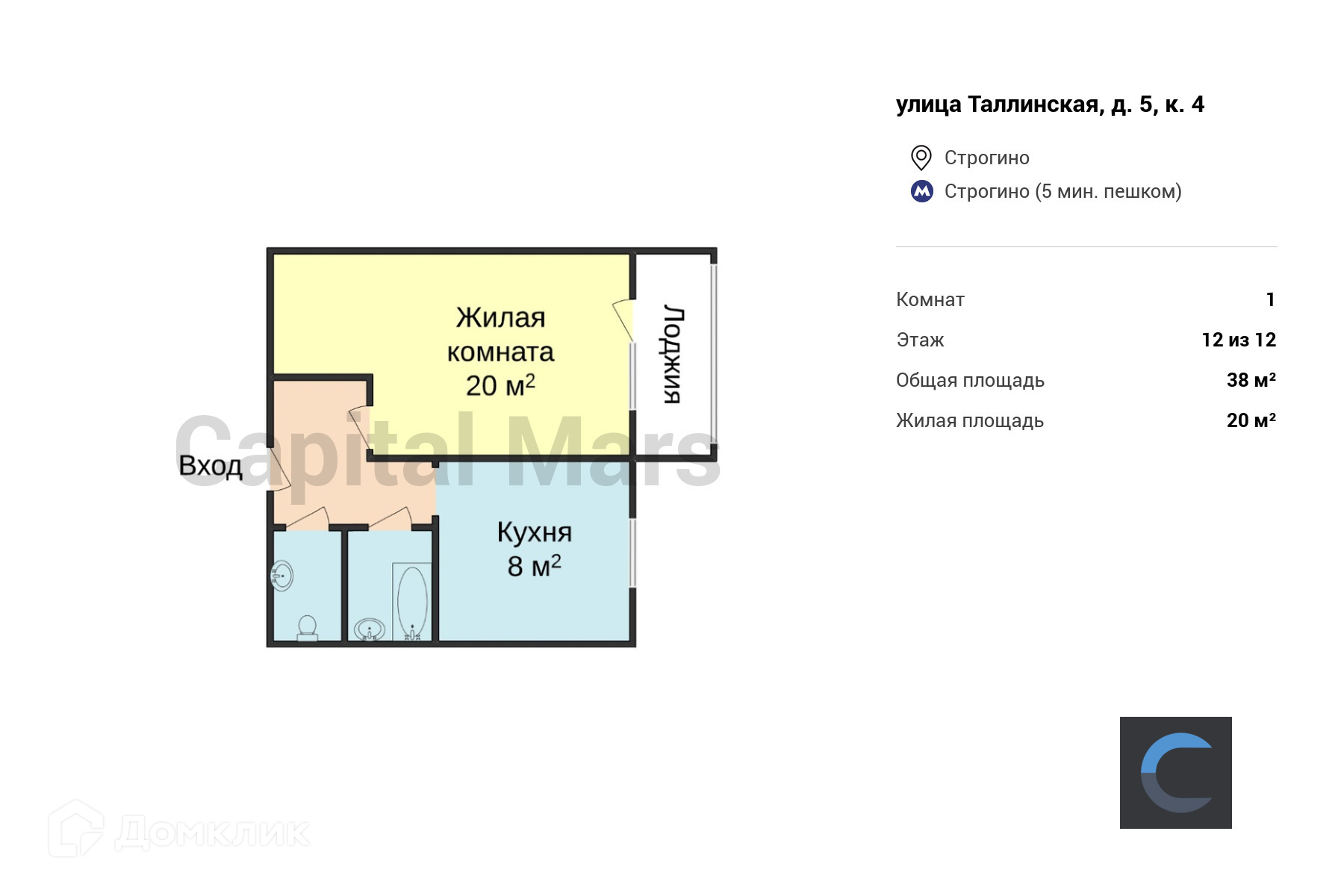 Жилая площадь 20 м2