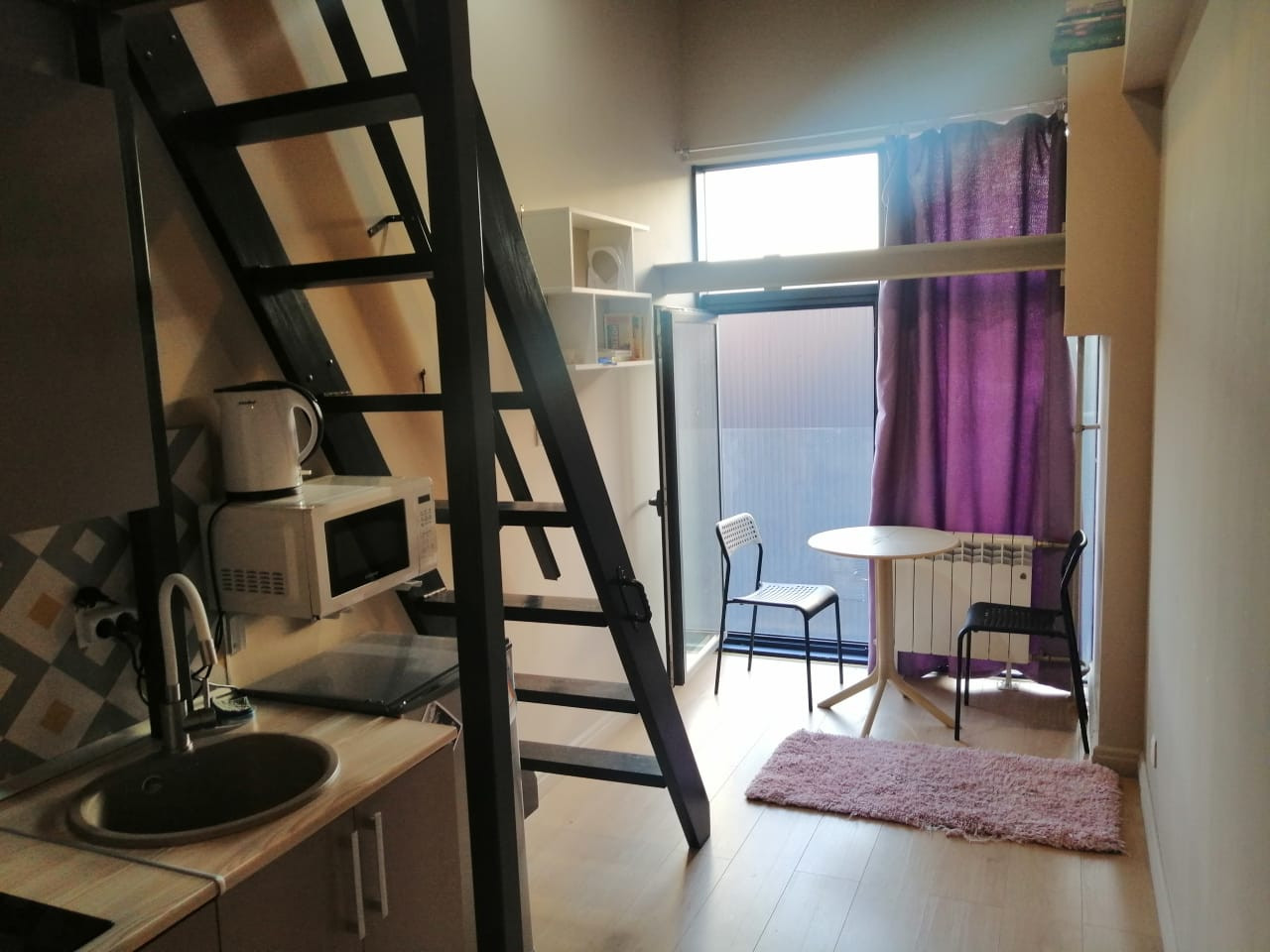 Сдается студия ,недалеко центра Москвы, площадью 20 кв.м. ( включая антресоль). До метро Авиамоторная пешком.На втором уровне расположена большая постель с ортопедическим матрасом 160*200 см.,стеллаж для белья прикроватный столик,  на первом уровне: обеденная зона и санузел. Кухонный уголок оснащен электрической плиткой, полноценным холодильником, стиральной машиной, микроволновкой, чайником, посудой для приготовления и приема пищи. Въезд на территорию дома через шлагбаум,всегда  есть парковочные места , так же во дворе имеется зона   барбекю.