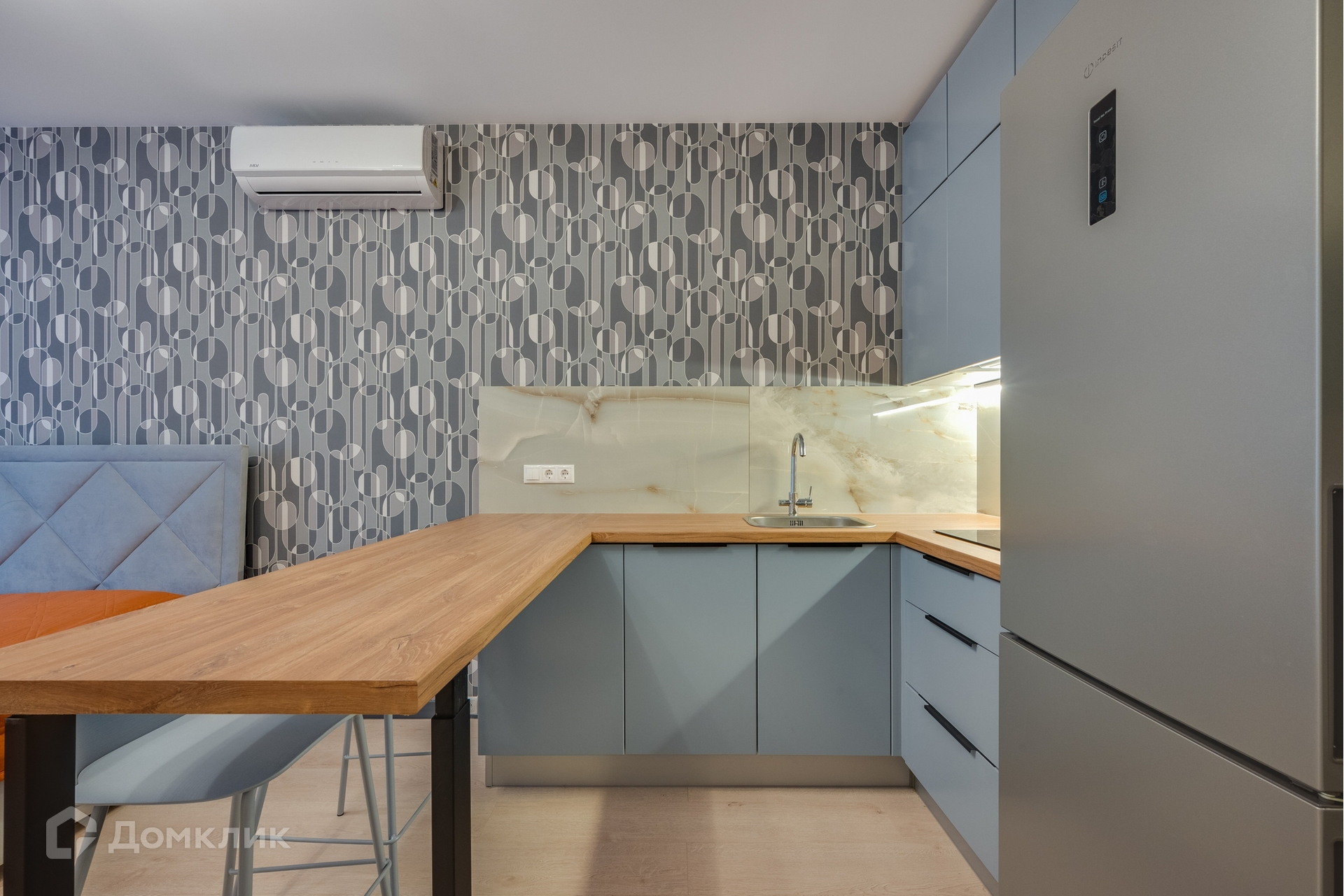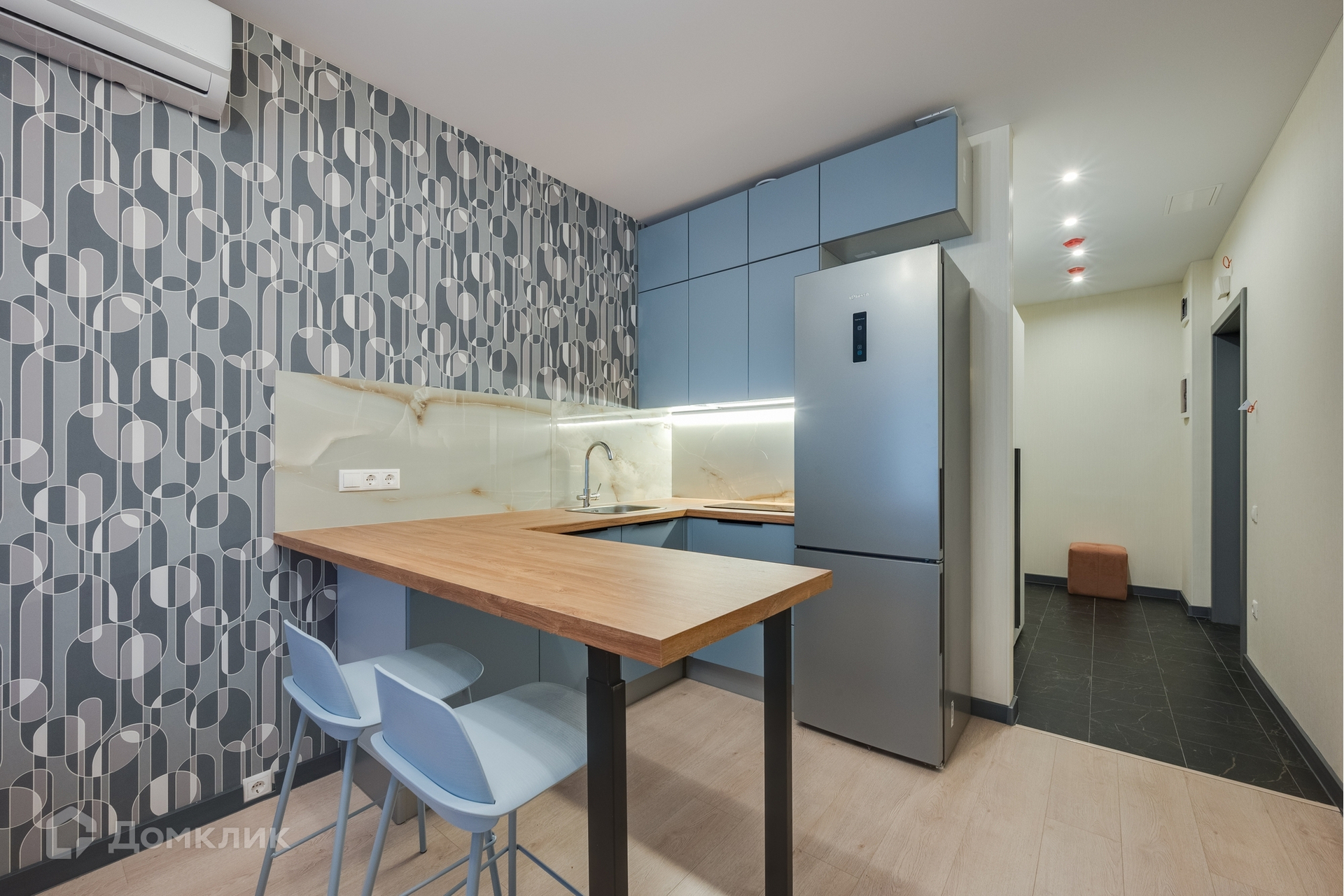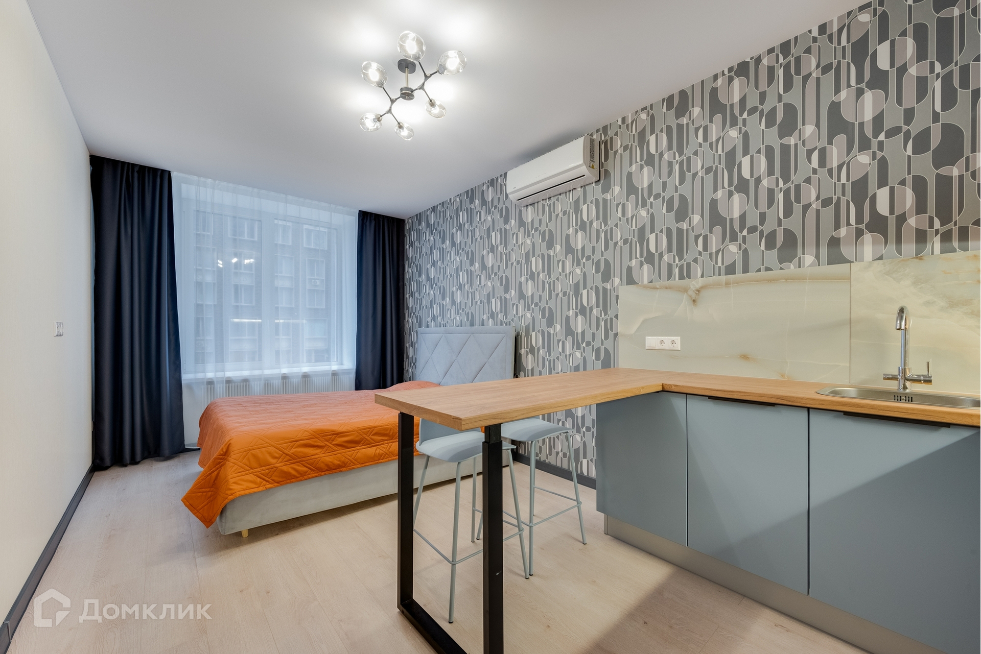 Площадь студии 25.5 кв. м, совмещенный санузел, свежайший ремонт, вся необходимая для комфорта мебель и техника: кухонный гарнитур, холодильник, варочная панель, посудомоечная машина, стиральная машина, кондиционер, кровать с бельевым ящиком,  большой шкаф для хранения вещей. Два быстрых лифта, консьерж, дизайнерская входная группа, безбарьерная среда - легко входить в подъезд с колясками и велосипедами, между домами прогулочная зона только для жителей комплекса.