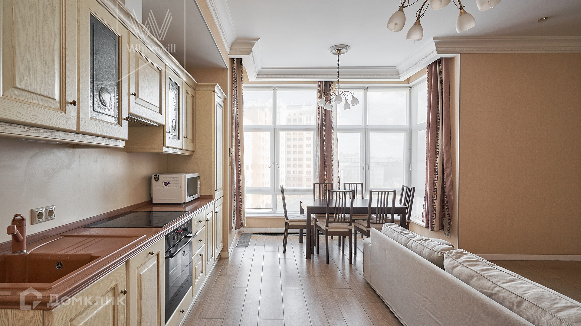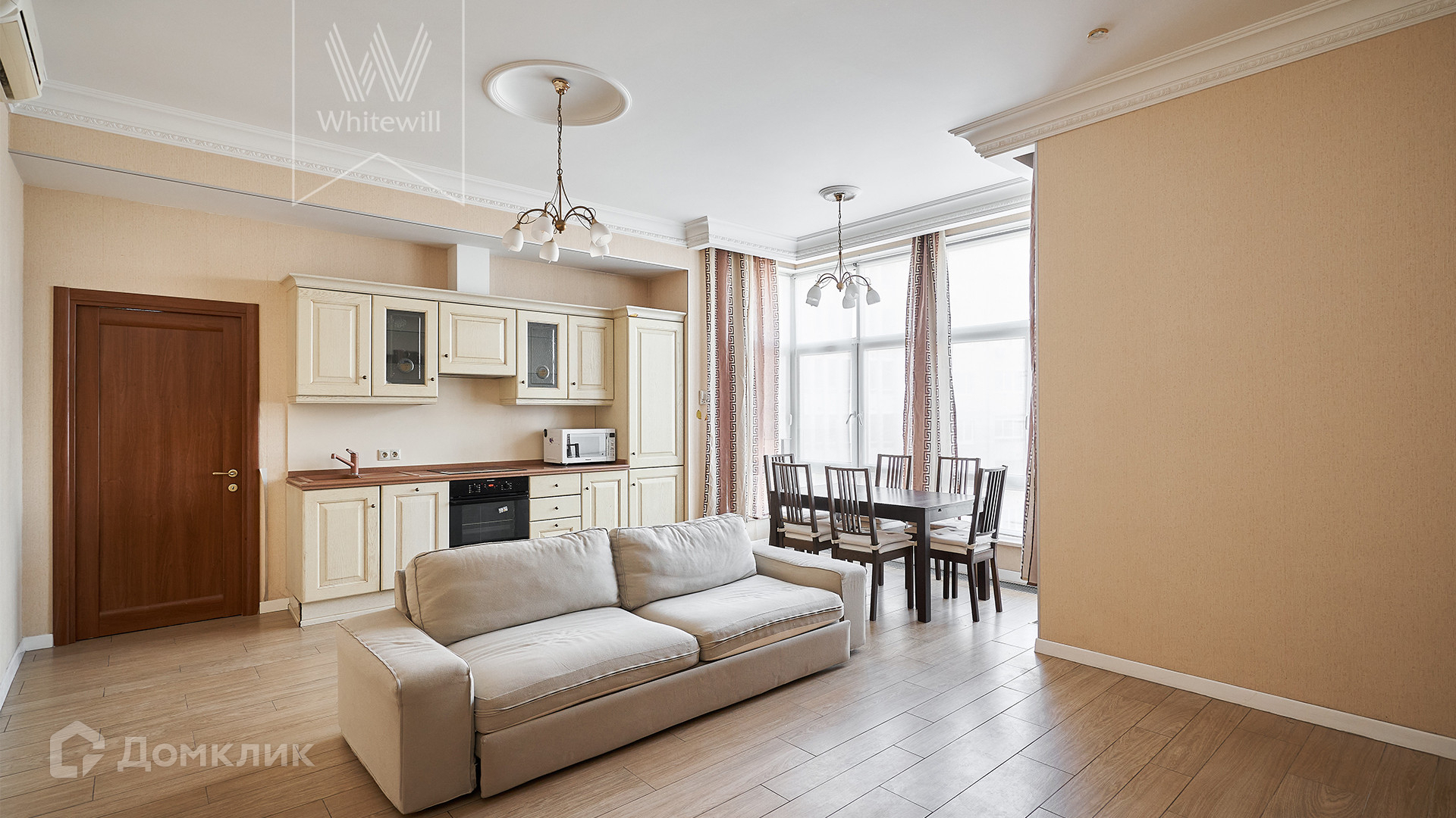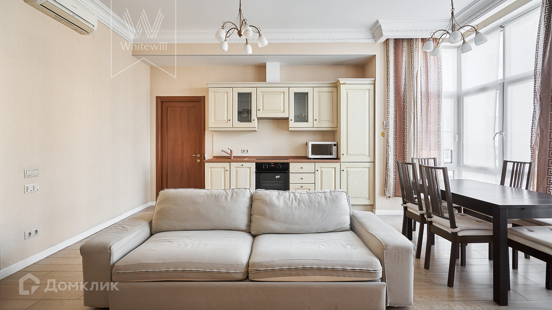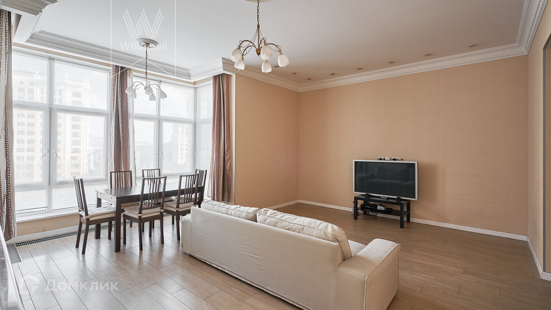 ID 920. С коллегами работаем 50/50. Просторная квартира с 2-мя спальнями в доме deluxe класса в 2-х минутах от Смоленской набережной. Квартира общей площадью 105 м² расположена на 6 этаже. Выполнен светлый ремонт в стиле «современная классика». Благодаря панорамным окнам пространство наполнено светом. Окна выходят в благоустроенный двор и в тихий переулок.