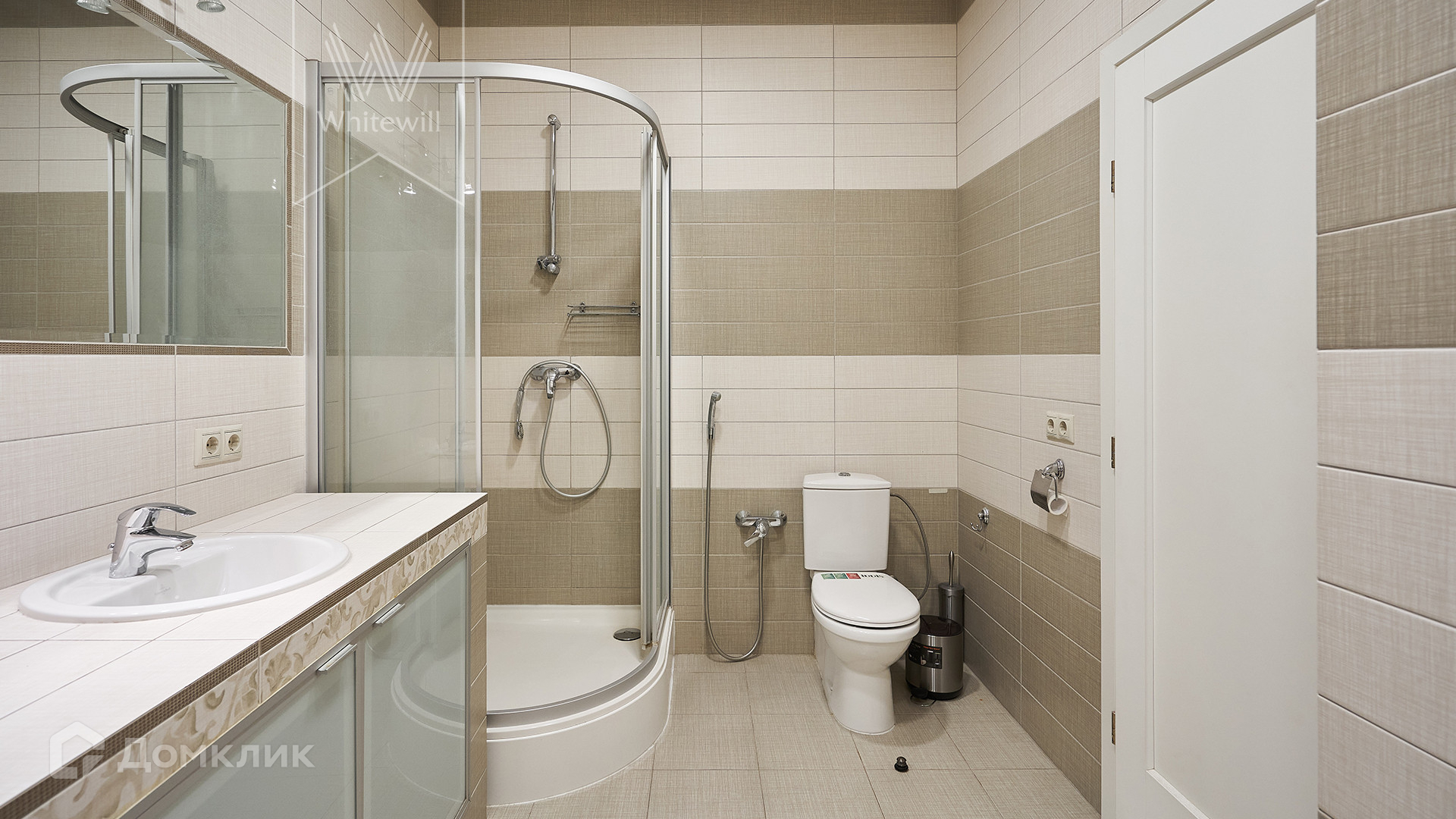 Планировка: кухня-гостиная с обеденной зоной на 6 человек, 2 спальни со своими ванными комнатами, гостевой санузел, холл с вместительным встроенным шкафом. Квартира меблирована основными предметами мебели, предусмотрено много мест для хранения, в наличии вся необходимая бытовая техника. Установлена система кондиционирования.