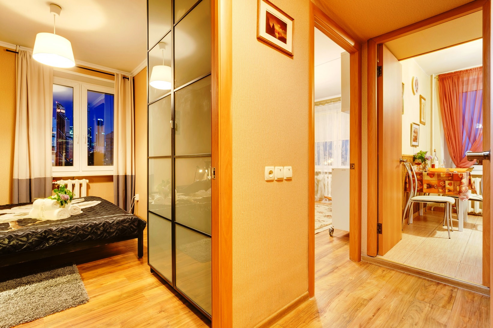 В прихожей шкаф-купе и набор для прихожей.