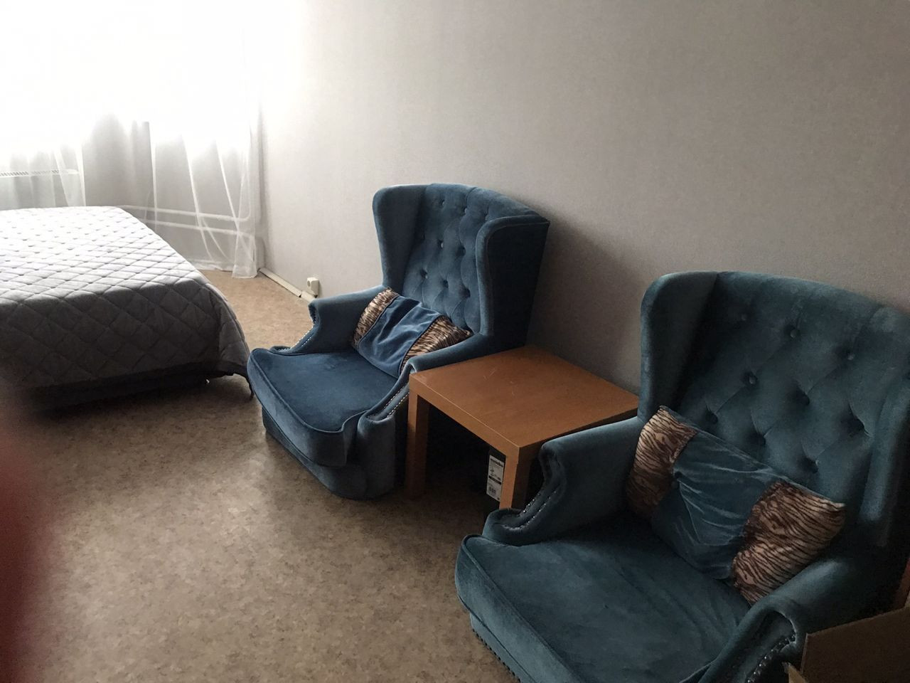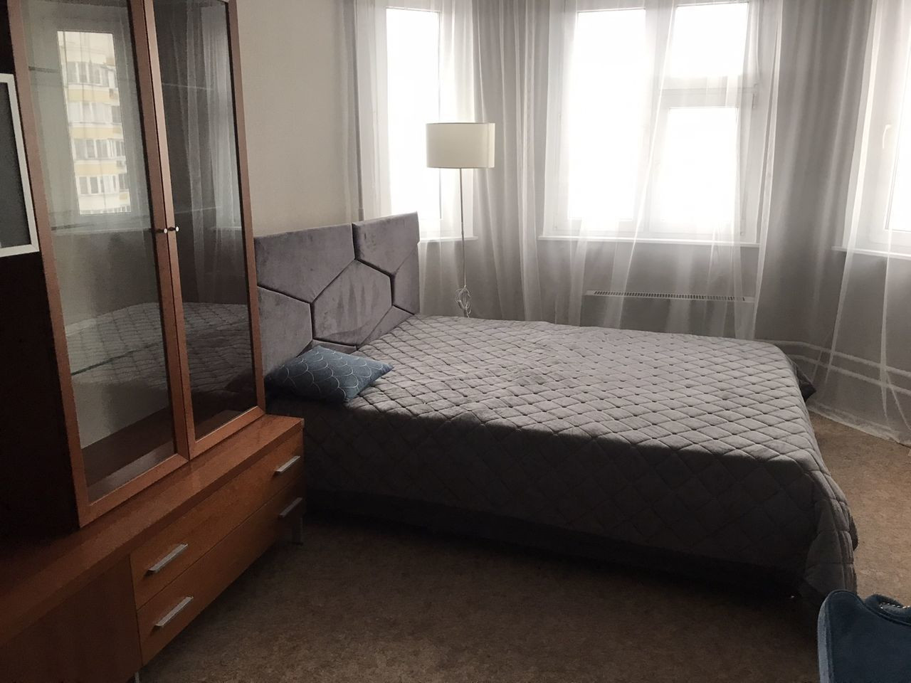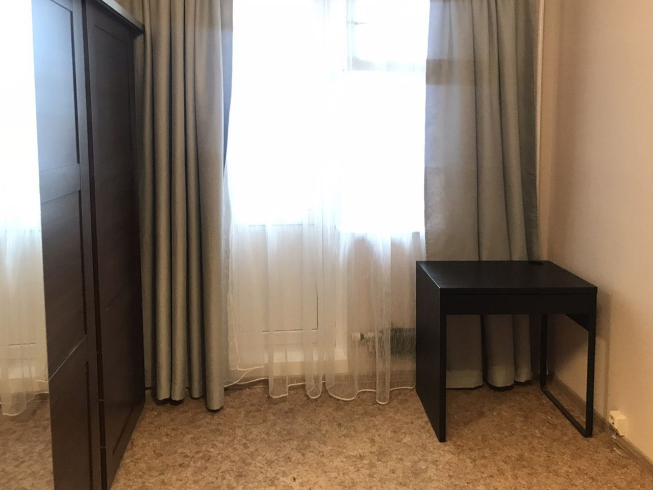 Раздельные комнаты полностью меблированы: имеются мягкий раскладной диван, кровать, практичные системы хранения, включая несколько шкафов с зеркалами. Обустроена светлая спальня с выходом на застекленный балкон. Стеклопакет, ламинат и светлые тона обоев.