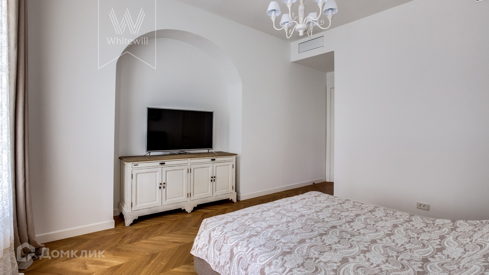 ID 236. С коллегами работаем 50/50. Апартаменты с 2-мя спальнями общей площадью 122 м² в клубном доме St. Nickolas на Лубянке. Выполнен дизайнерский ремонт в стиле современной классики. В отделке использовано натуральное дерево, на полу выложена паркетная доска. Интерьер оформлен в приятных светло-бежевых тонах, высокие потолки украшены подвесными люстрами с лампами-свечами.
