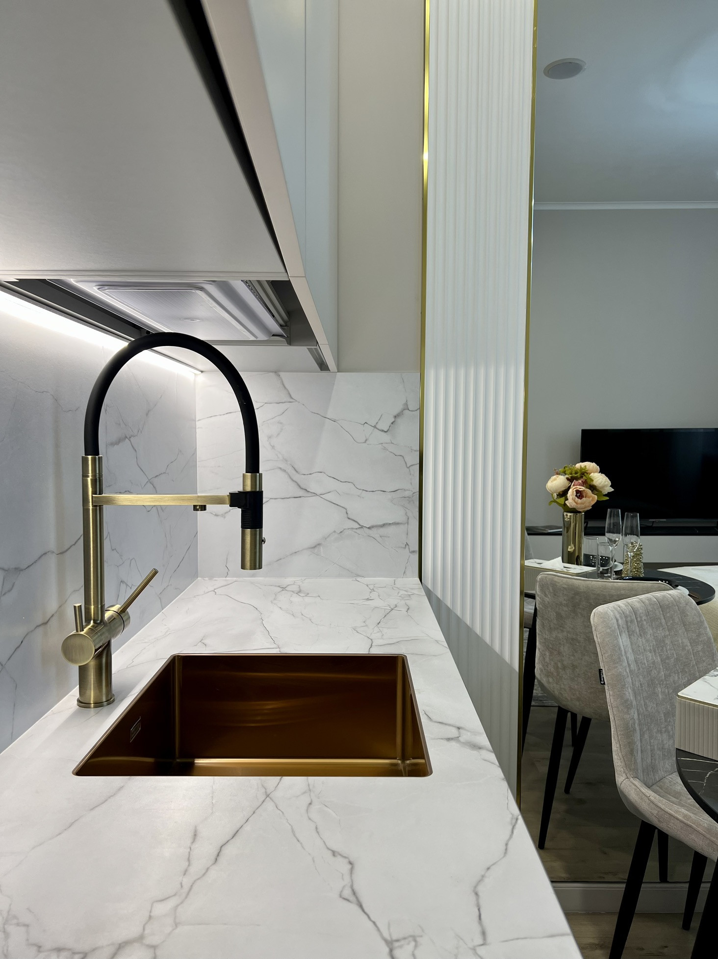 - посуда (набор столовых приборов, тарелок, кастрюль, ножей, бокалов под шампанское и вино, набор для готовки, разделочные доски и т.д.),