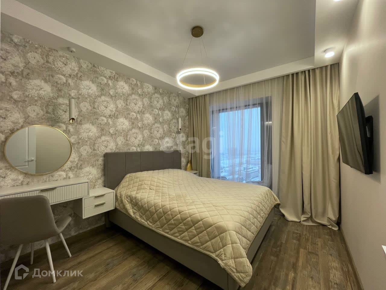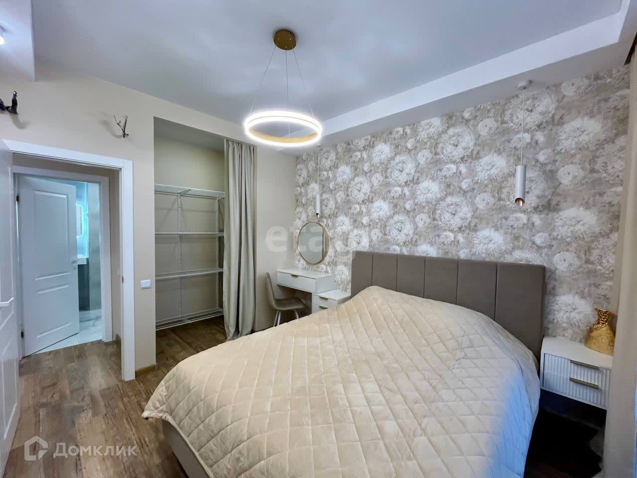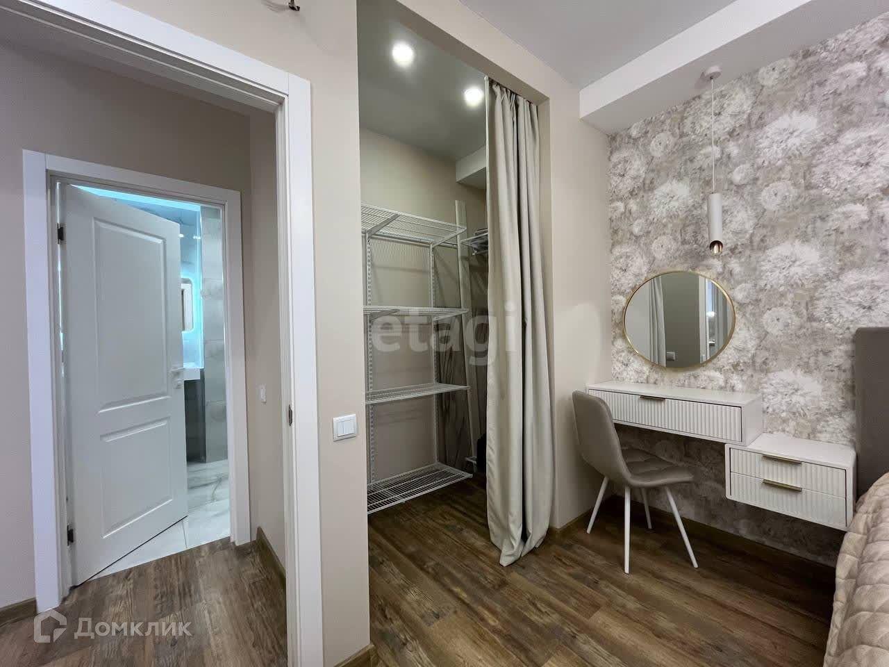 -В изолированной спальне комфортная двуспальная кровать с подъемным механизмом. ТВ для просмотра видео. Так же есть туалетный столик для ухода. Вместительная гардеробная для личных вещей отлично заменит стандартный шкаф.