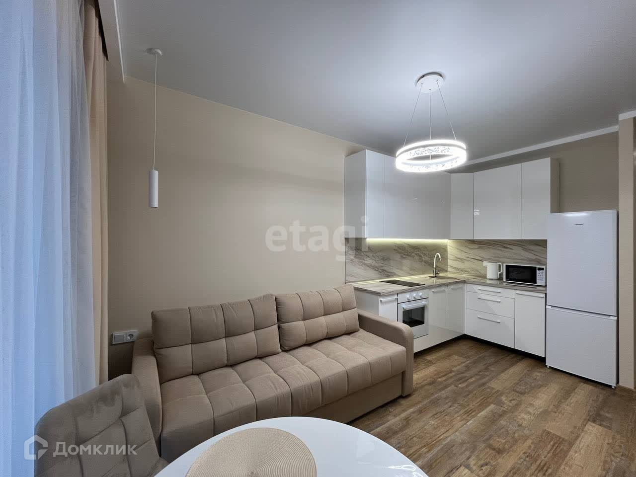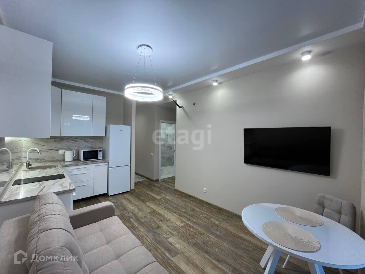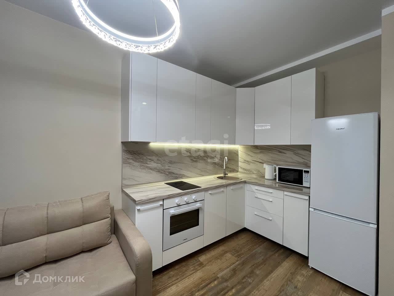 -Кухня-гостиная отлично подойдет для готовки и отдыха с гостями. Вся необходимая техника есть: посудомоечная машина, электрическая варочная панель, духовой шкаф, микроволновая печь, чайник.