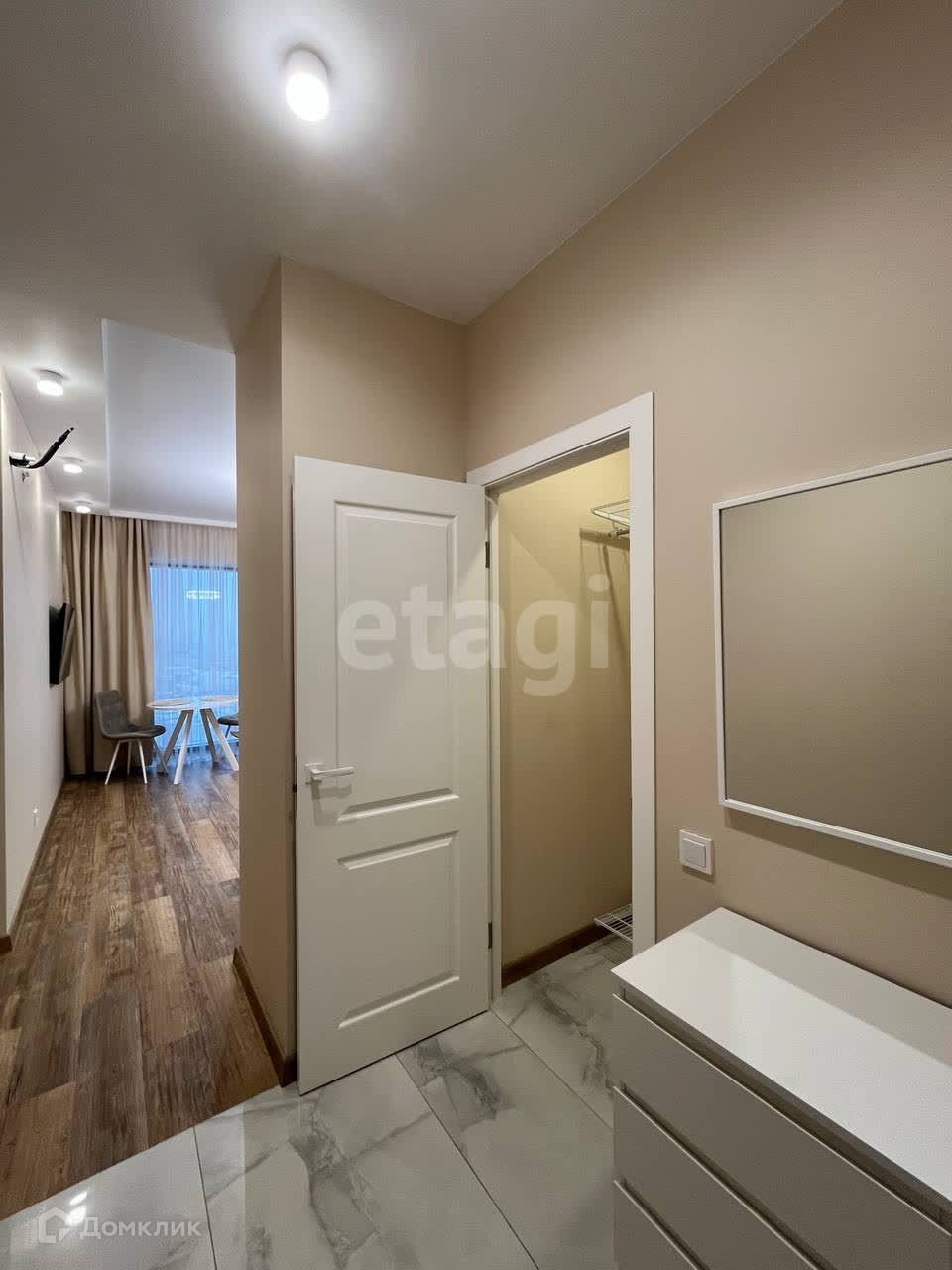 - В прихожей комод, зеркало и вторая гардеробная для верхней одежды и обуви.