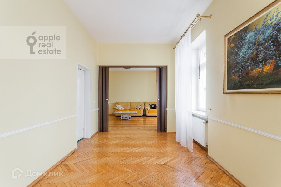 Стильная 5-комнатная квартира в дореволюционном особняке, расположенная на 6 этаже 7 этажного здания. Спален: 4, санузлов: 2. Общая площадь: 125 кв.м. Потолки 3 м. Ремонт в обычном стиле. Квартира без мебели. Посудомоечная машина, холодильник, кондиционер, ванна, стиральная машина, подогрев полов, телевизор, высокоскоростной интернет. Балкон. Домофон. Паркинг стихийный во дворе. Открытый вид, много света. Можно с детьми. Возможна оплата по безналу.