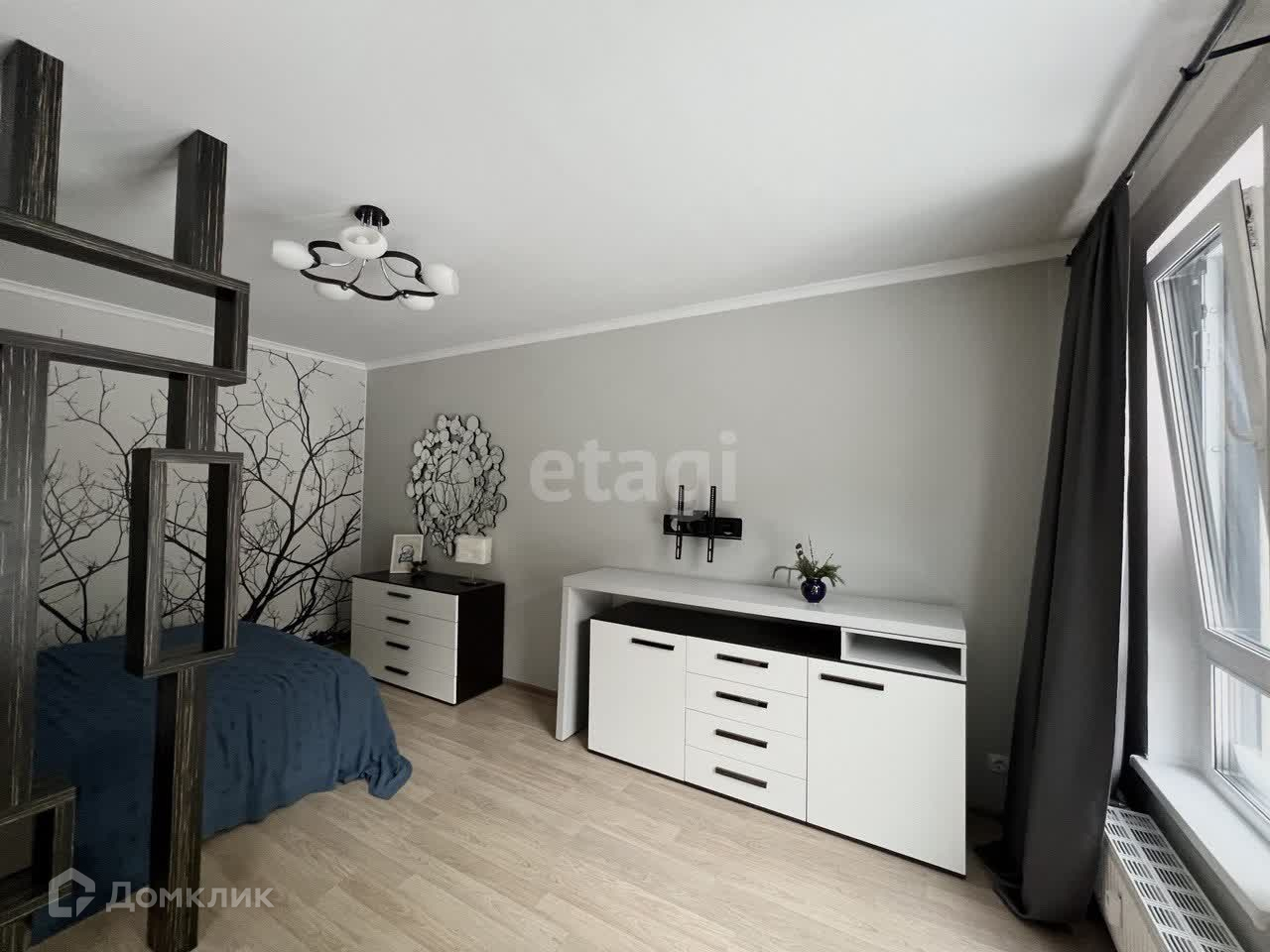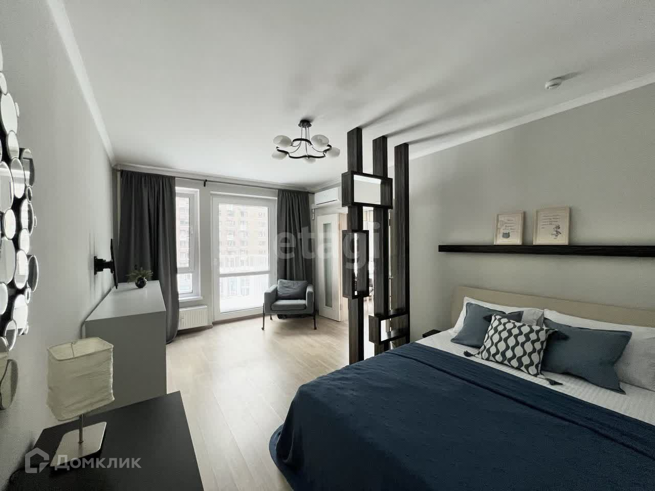 1-ая комната оборудована двуспальной кроватью, комодом, для личных вещей и одежды, а так же балкон, который выходит во двор.