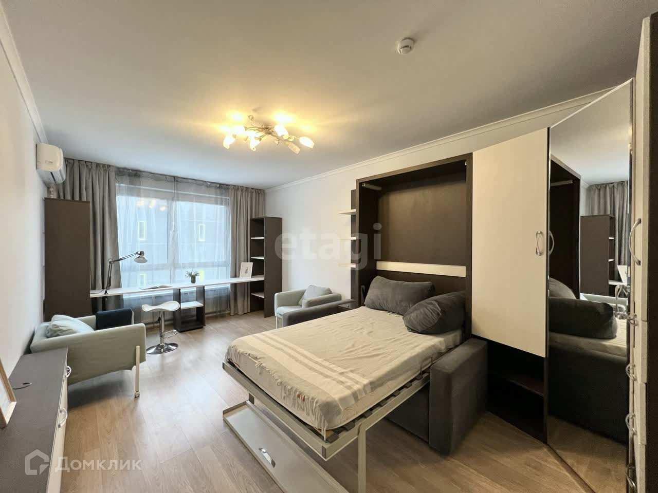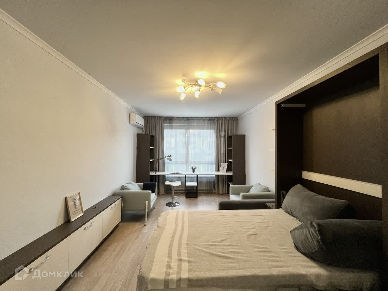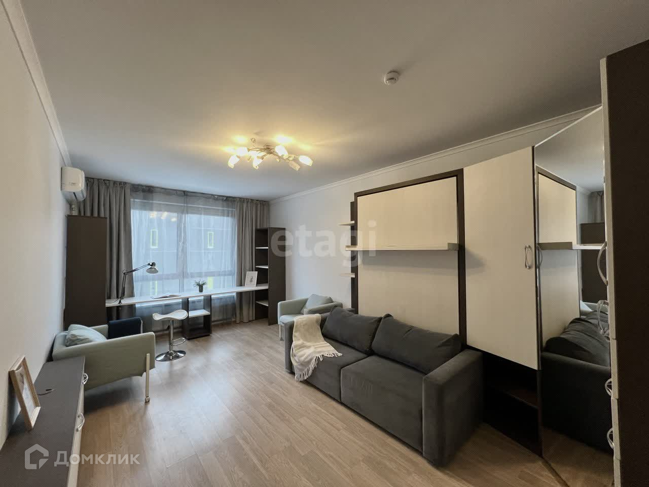 2-ая комната оборудована диваном, который раскладывается в 1,5 кровать. Имеется рабочий стол, который находится вдоль стены с видом во двор дома.