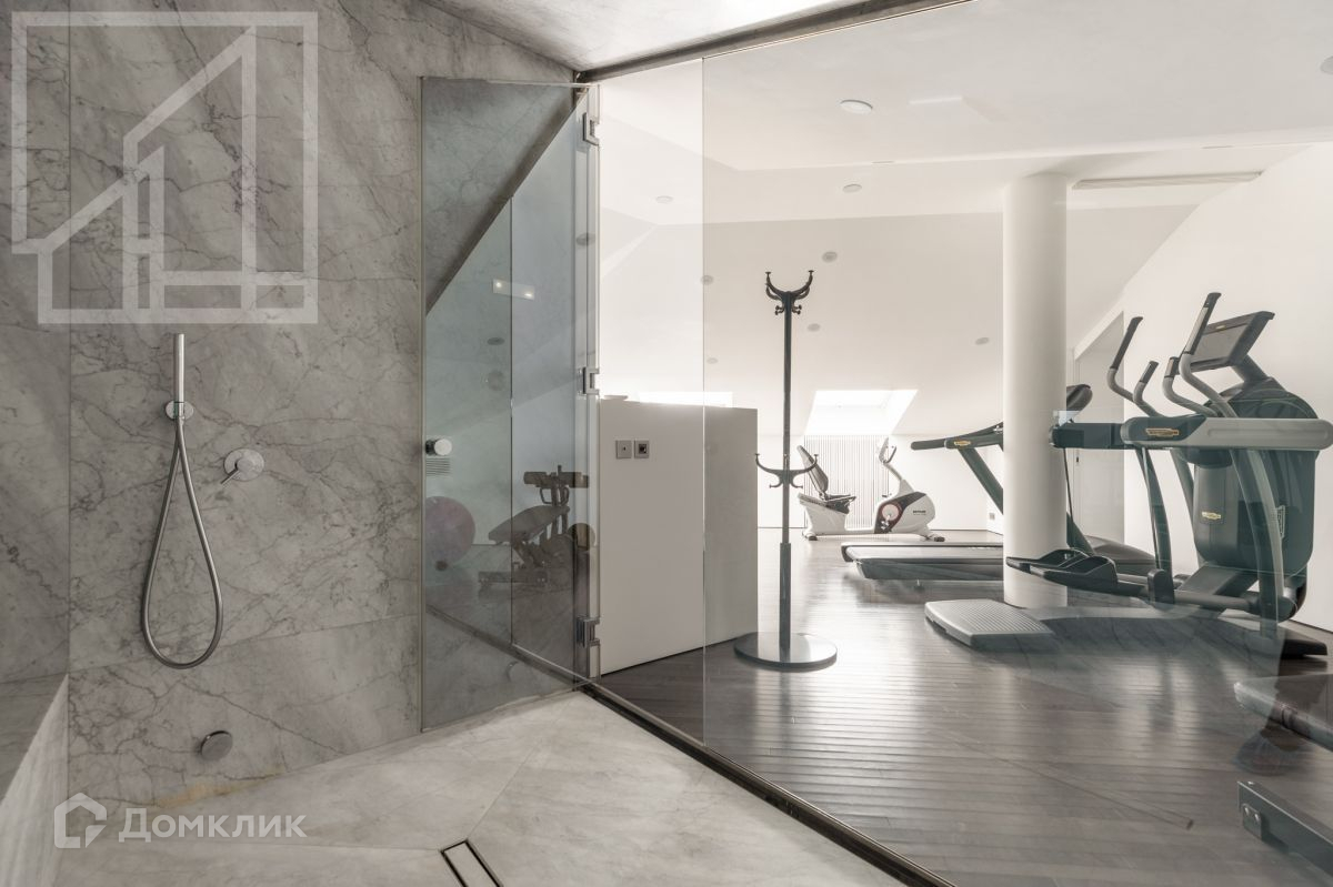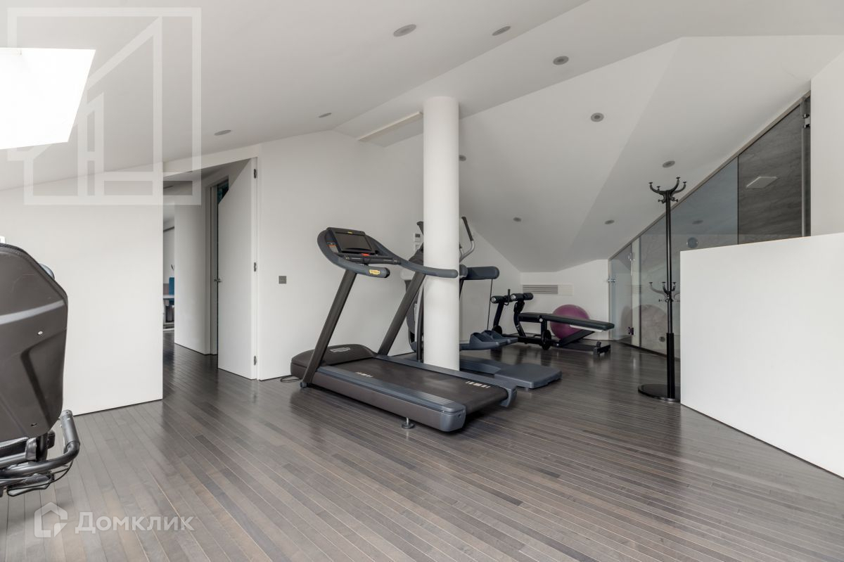 2-й этаж: фитнес-зона, хамам, две спальни с душевой и санузлом, гардеробной и системой хранения. Выполнен дизайнерский ремонт с использованием натурального дерева и камня.