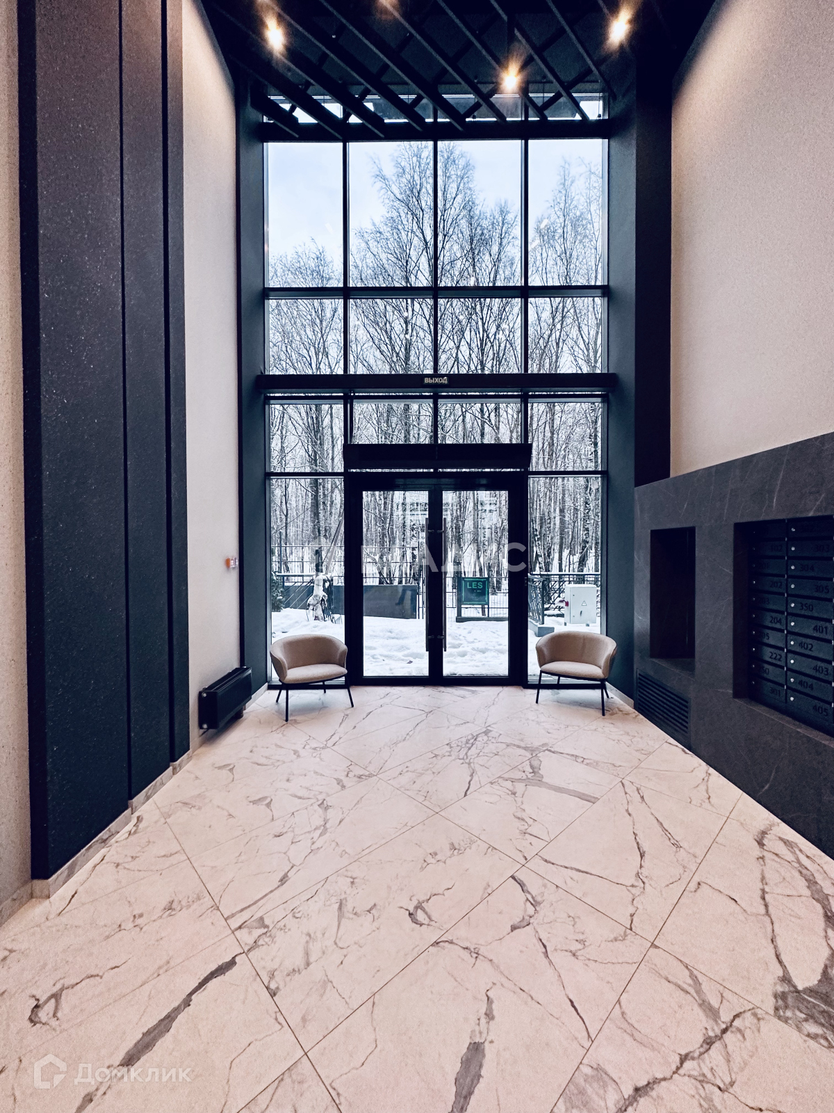 - Гостиная с видом на лес и доступом из главного лобби для организации мероприятий, доступная только резидентам комплекса