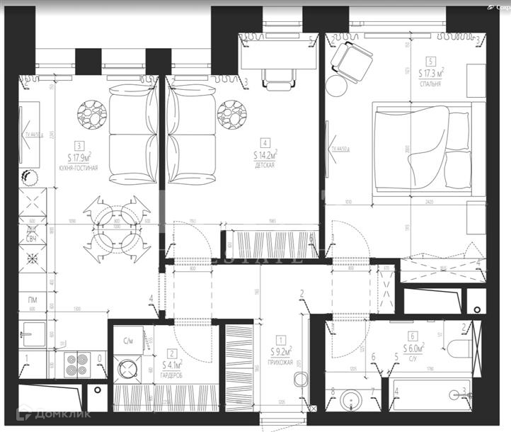 Жилая площадь 55 м2