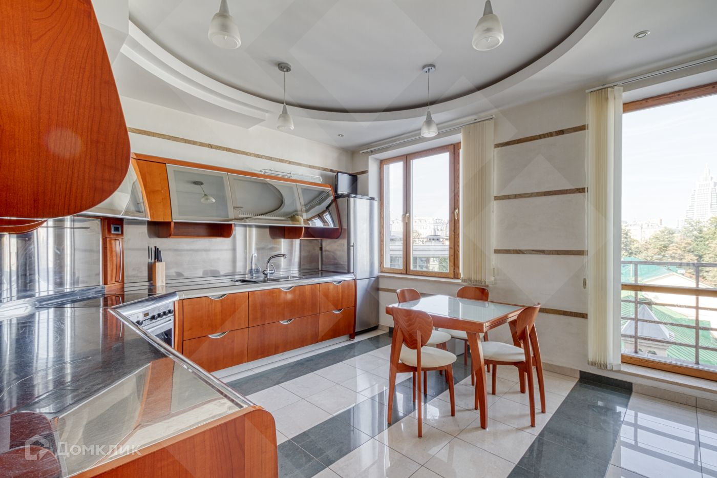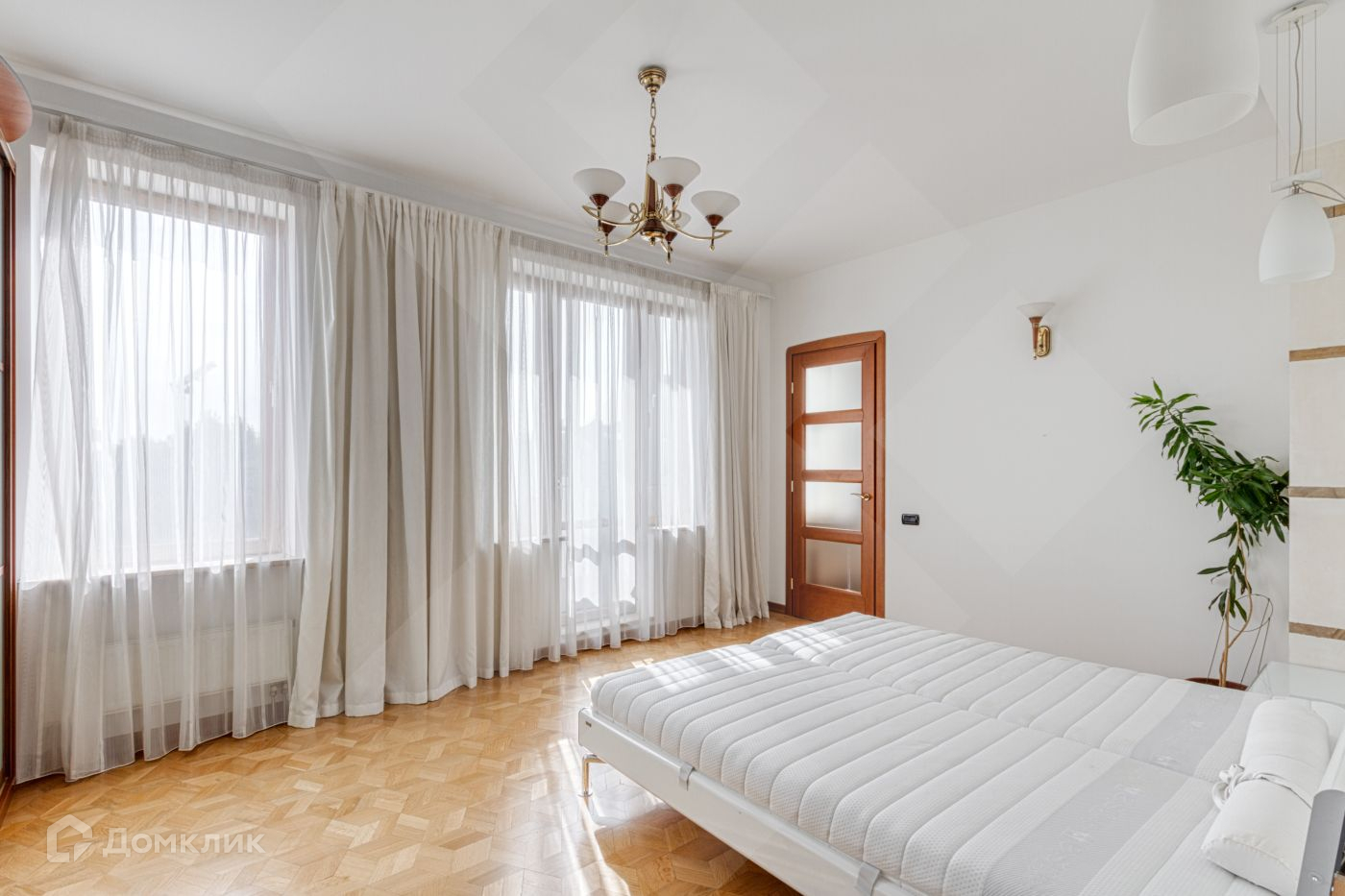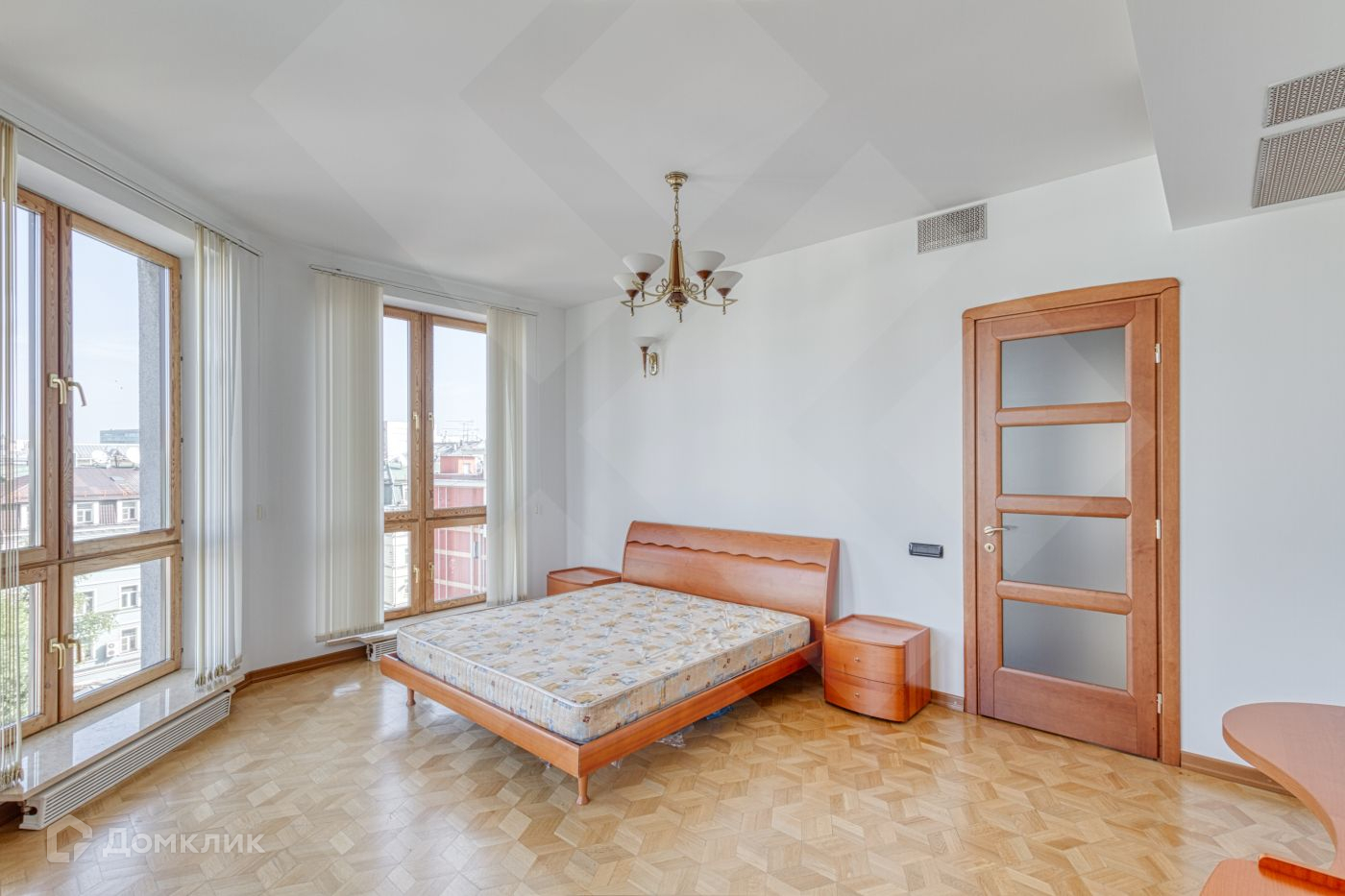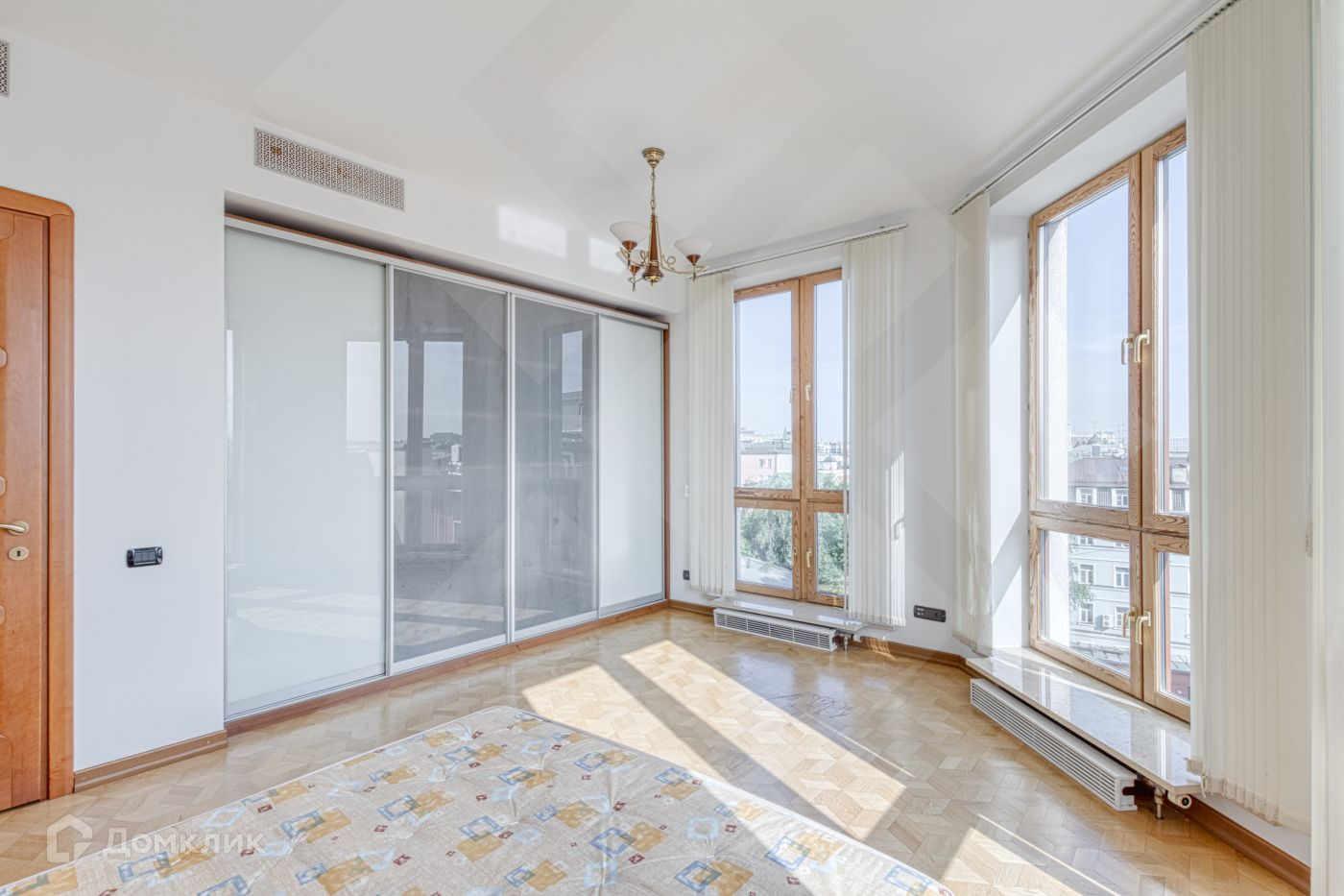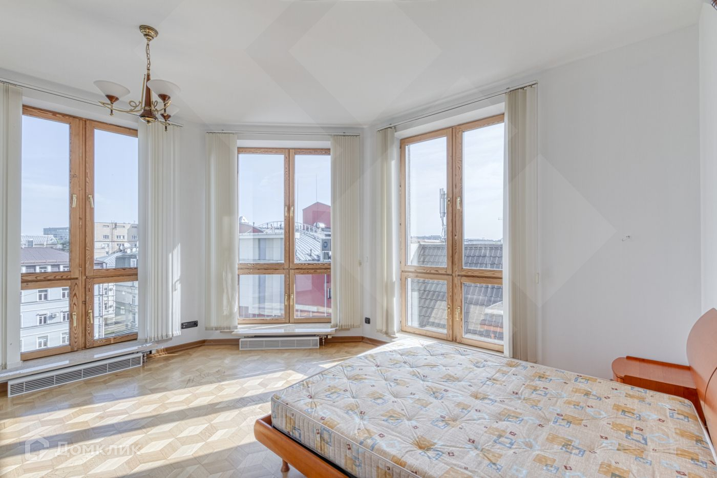 В квартире много света, большие панорамные окна и вид на три стороны, высокий потолок.