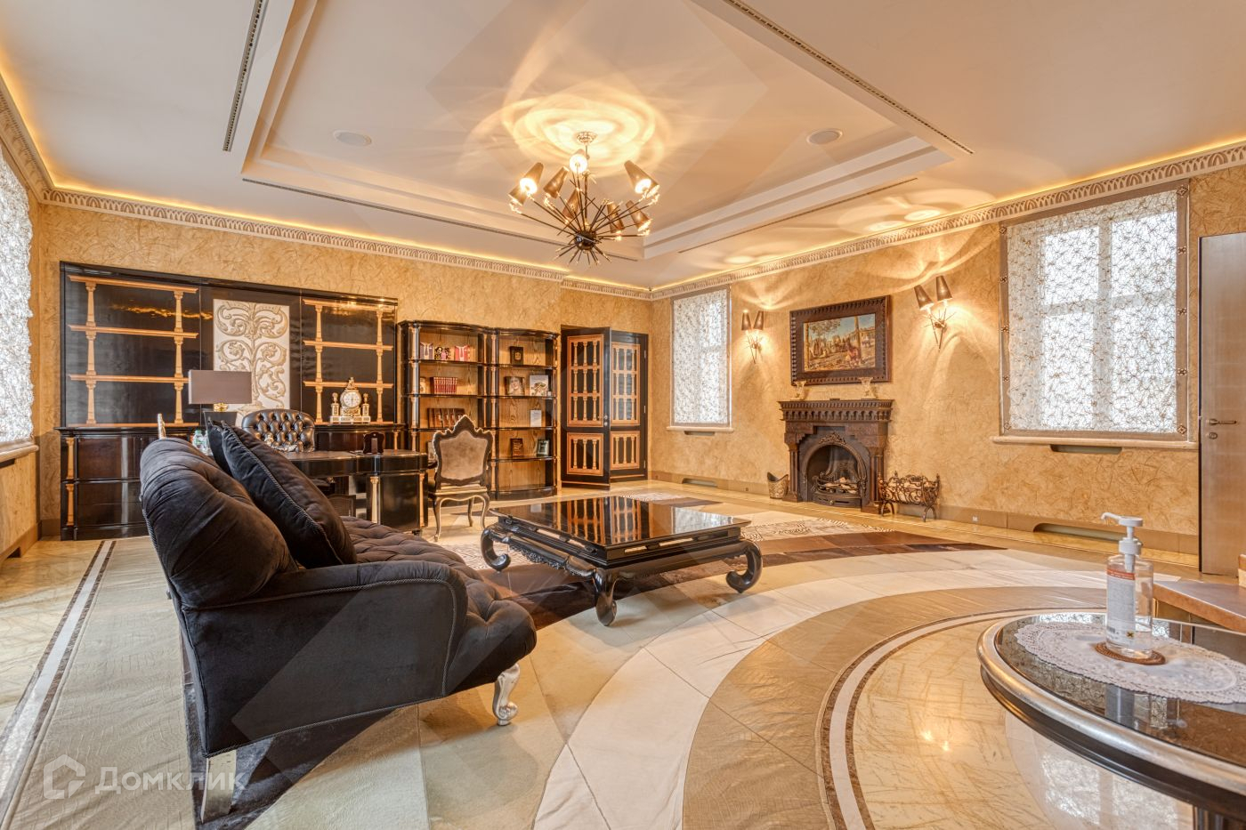 2-й уровень: просторная гостиная со столовой зоной, кухня, 2 санузла, гардеробная комната, а также комната для персонала, дровяной камин,