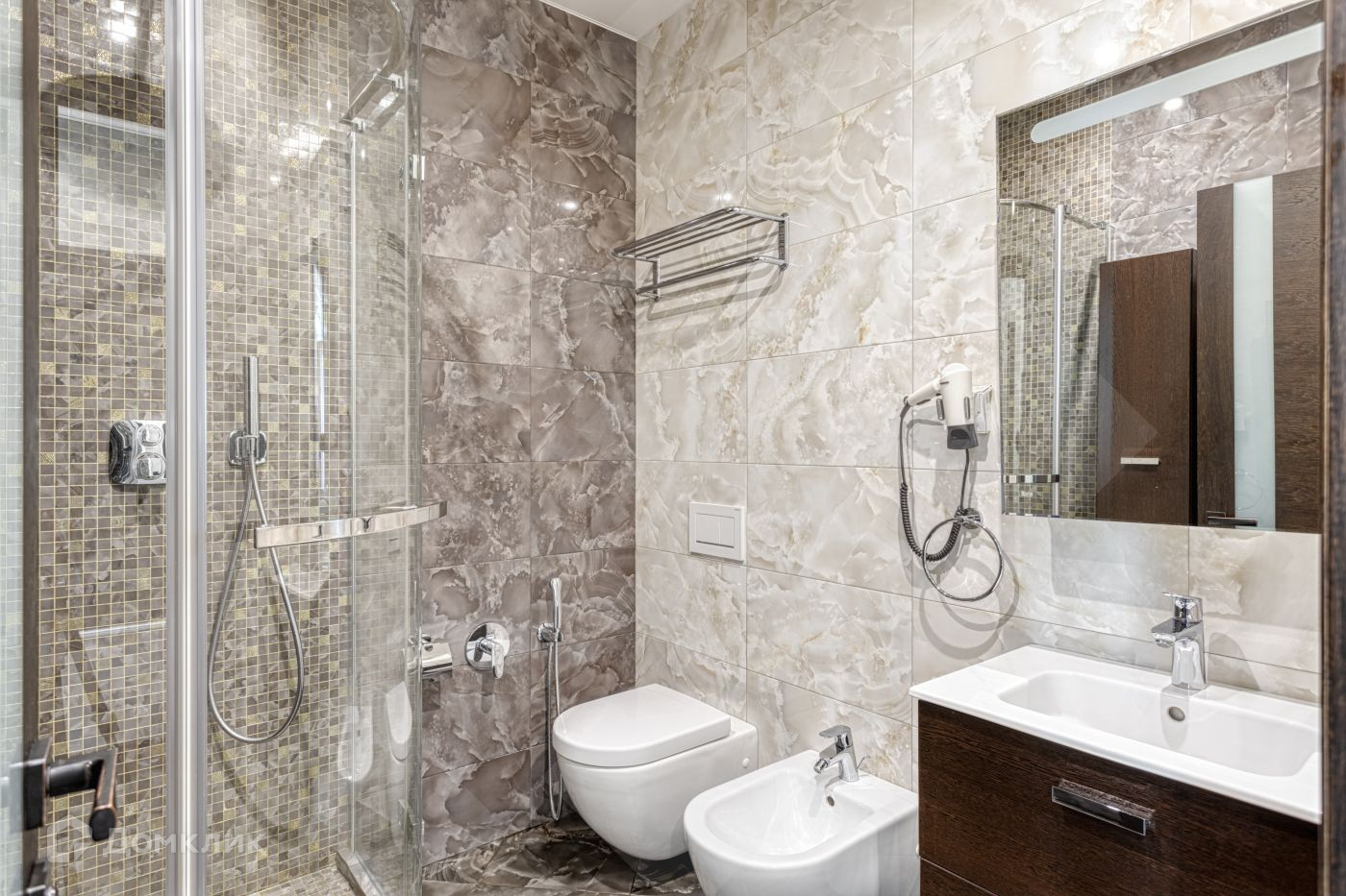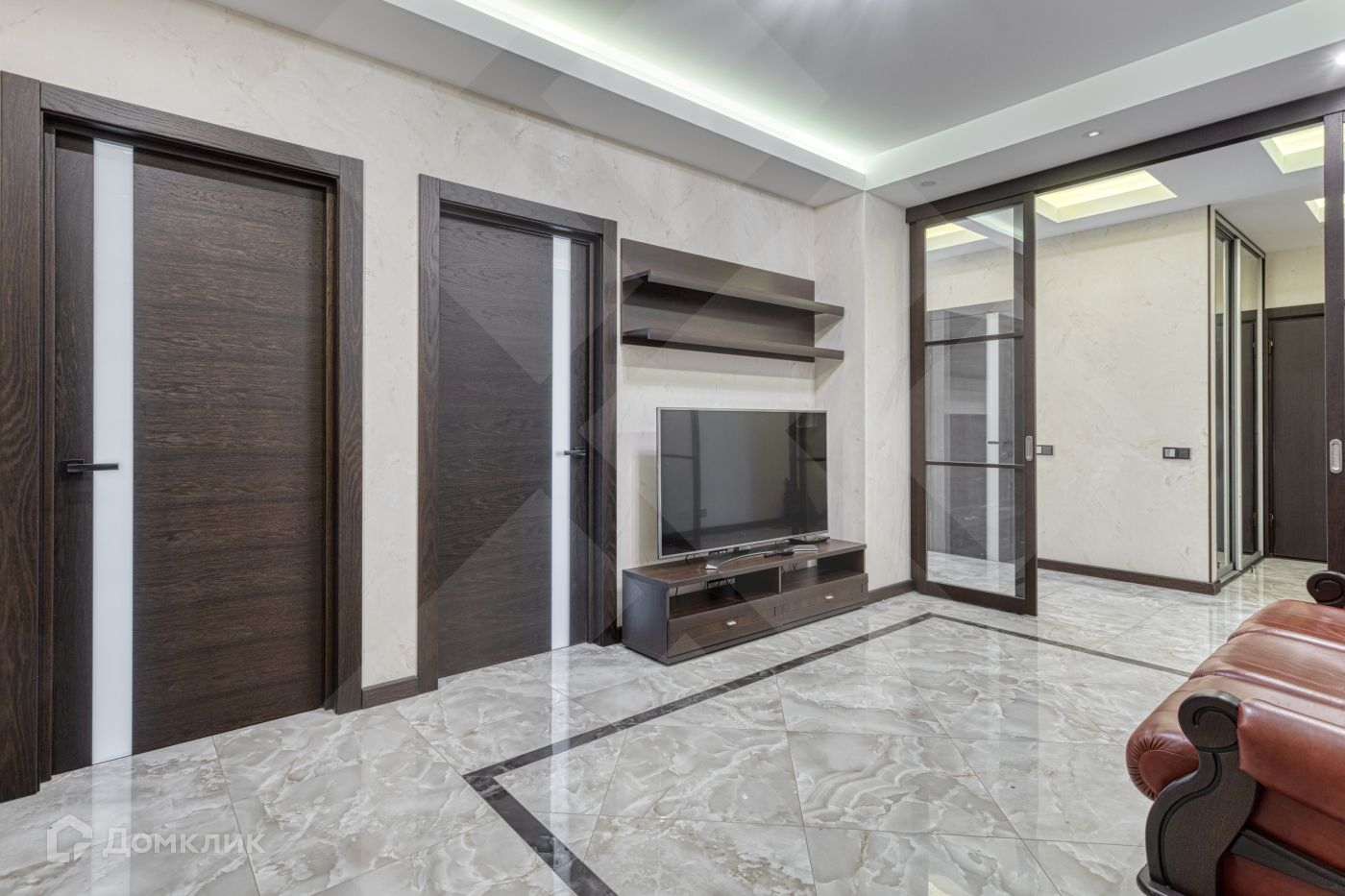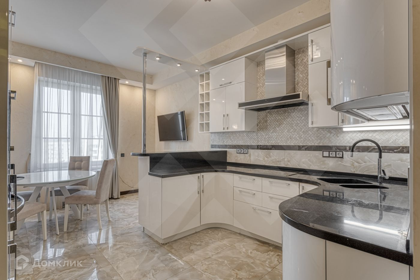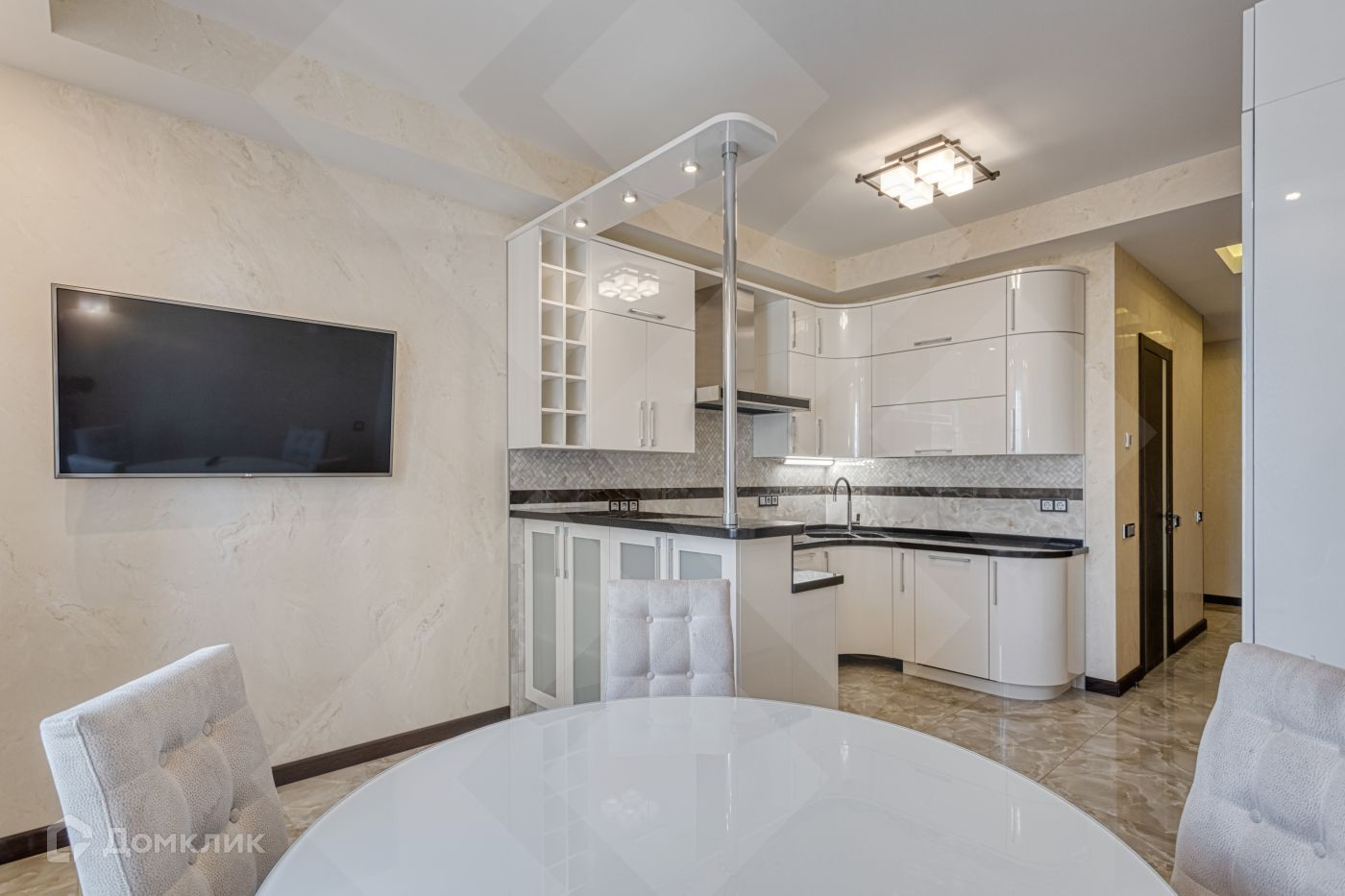 В квартире выполнен высококачественный евроремонт с применением лучших отделочных материалов, подогрев полов, хорошая мебель. Ремонту сделан 2 года назад и почти в ней не жили.