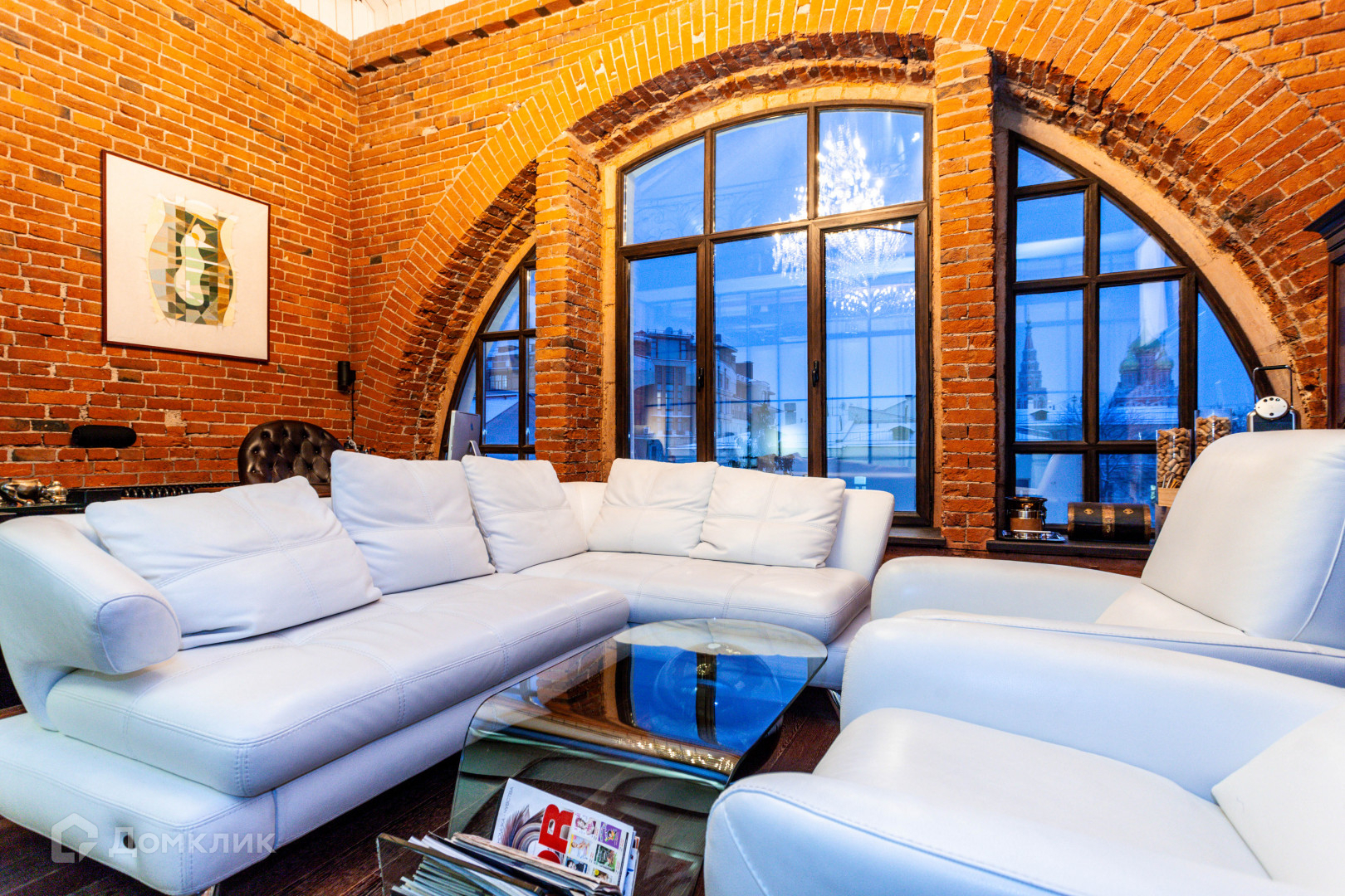 Из окон обоих уровней прямой вид на Кремль и Кадашевскую церковь 16 века и другие достопримечательности центра столицы.