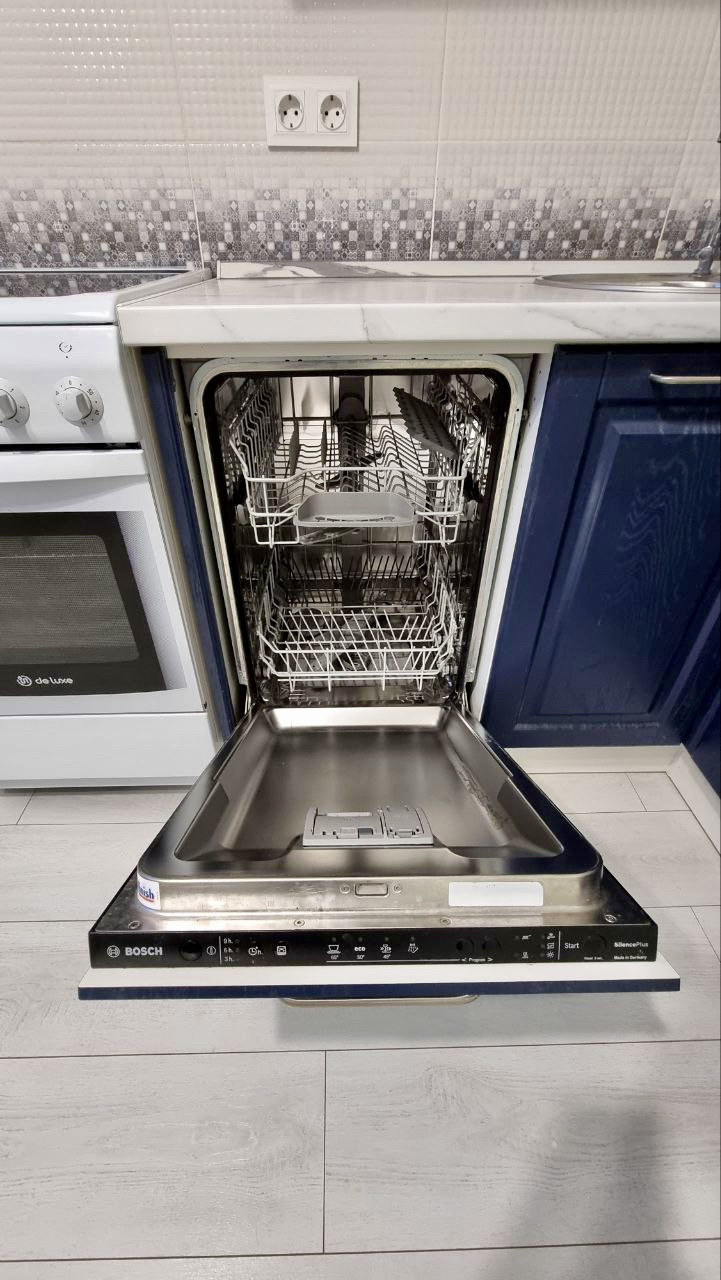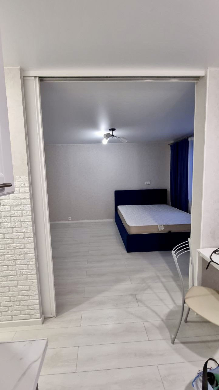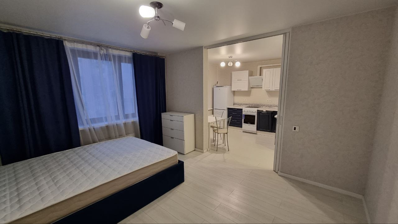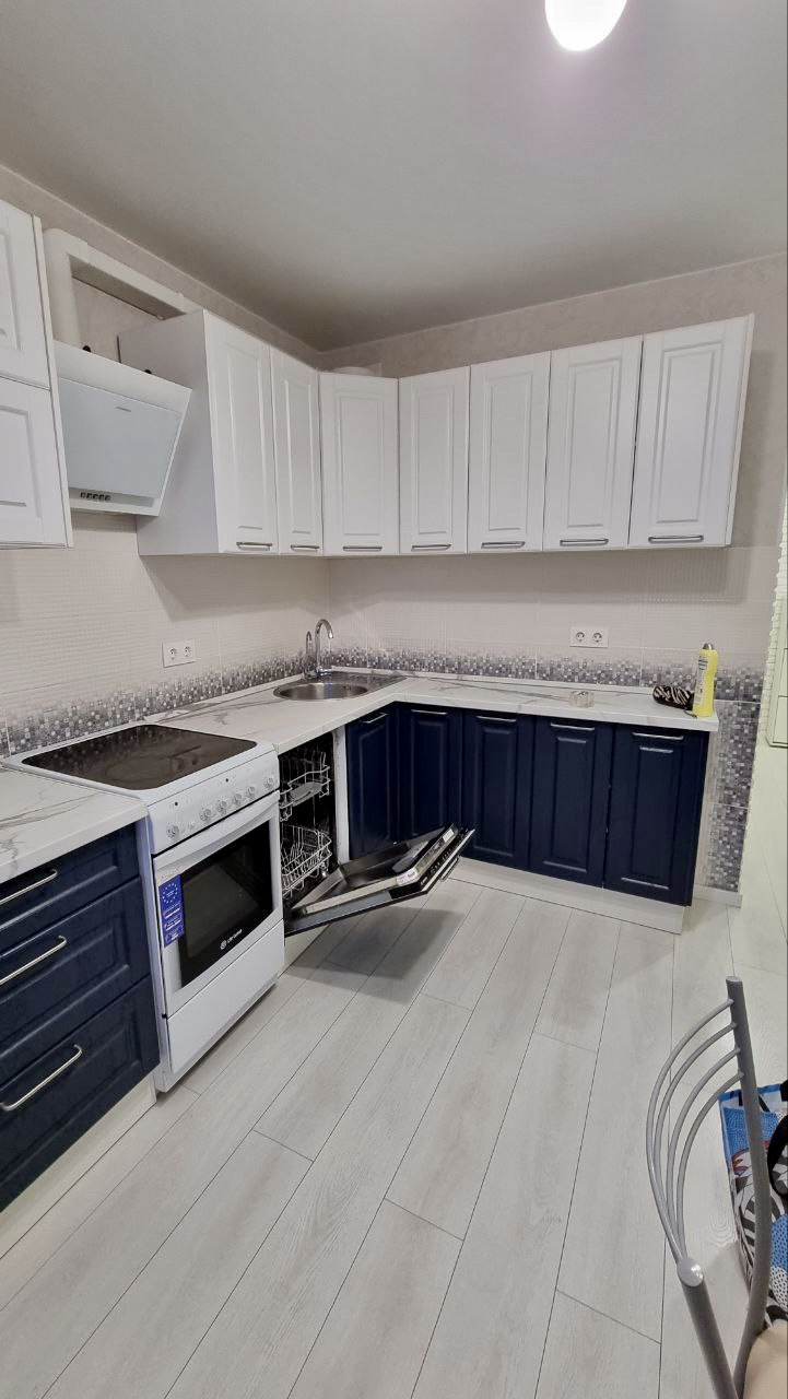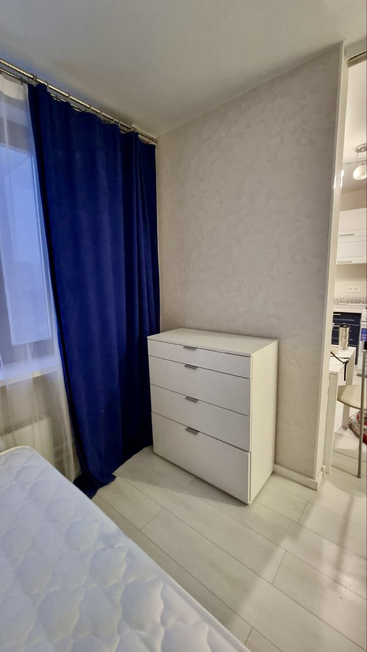 Кухня оснащена посудомоечной машиной, духовым шкафом, варочной панелью, холодильником. В комнате функциональная кровать с удобным матрасом, комод.