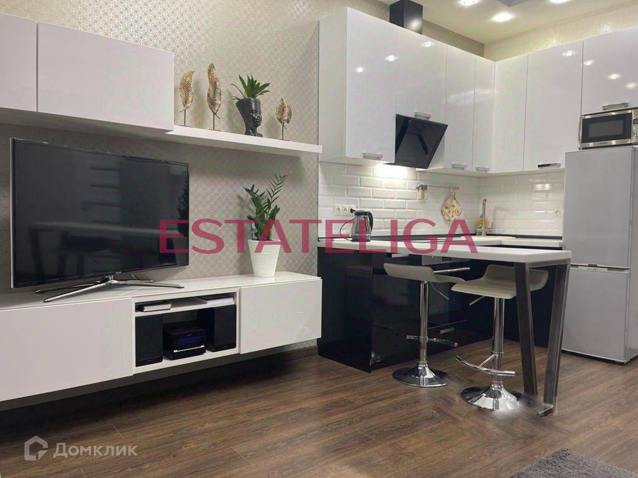 Квартира оборудована всей необходимой встроенной бытовой техникой: стиральная машина, микроволновая печь, варочная панель, посудомоечная машина, холодильник, телевизор, кондиционер.