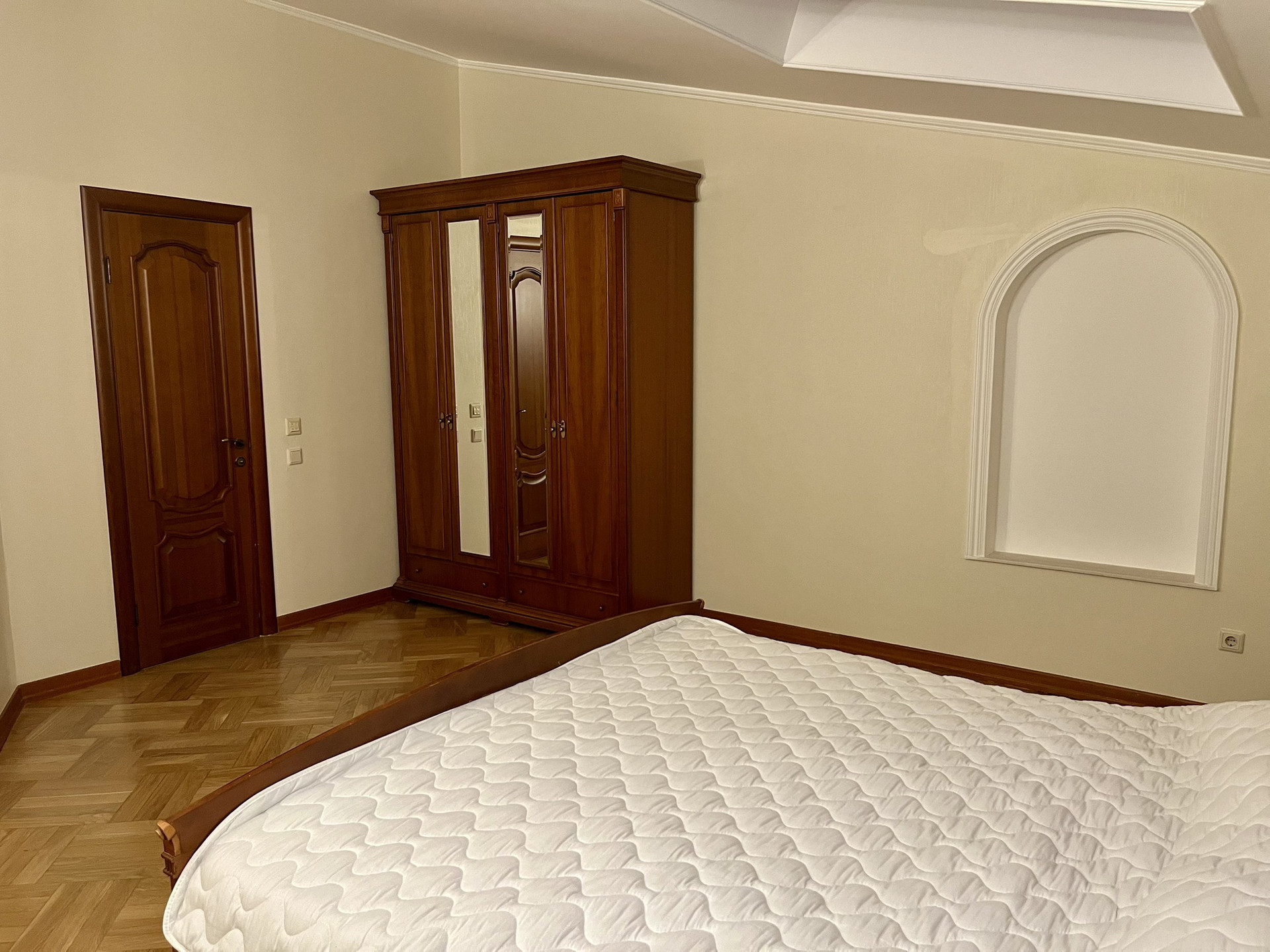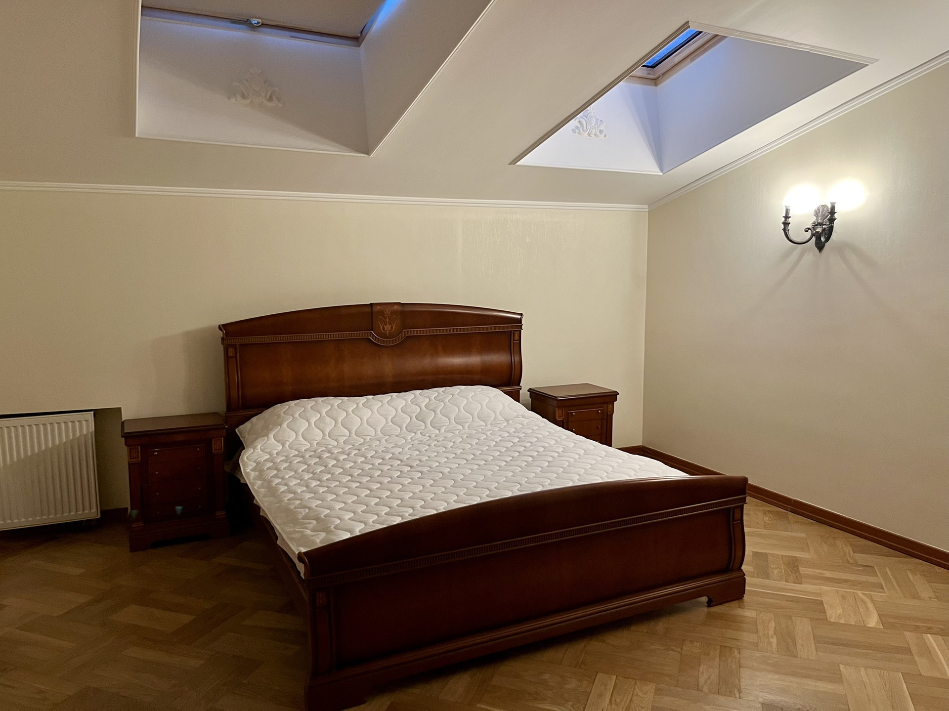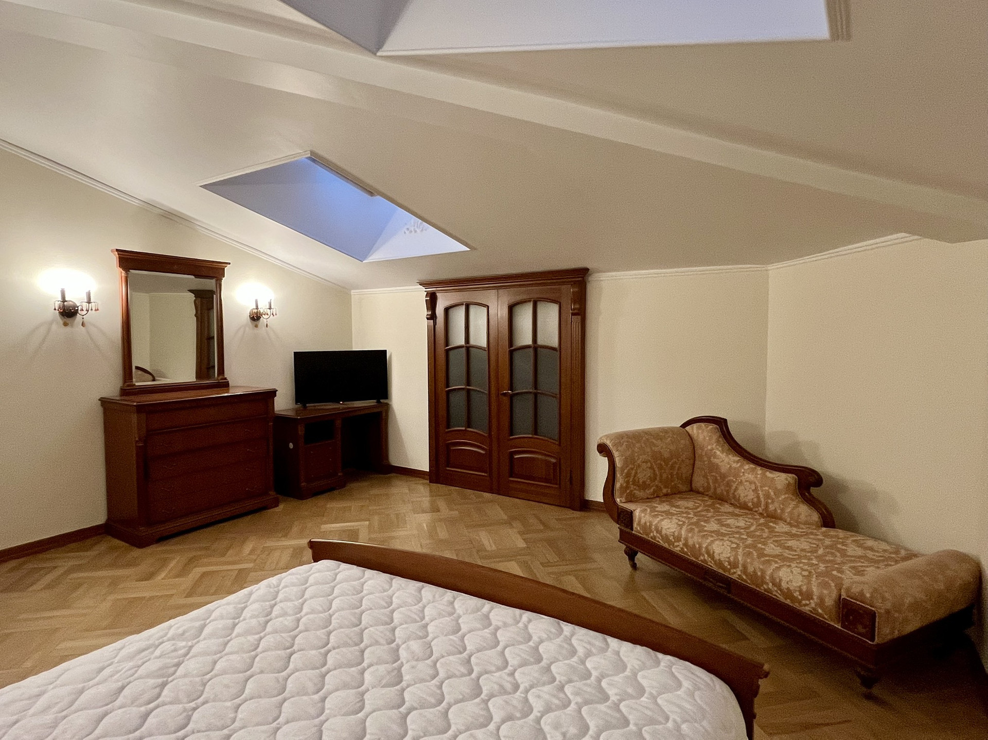Выполнен дизайнерский ремонт с использованием ценных пород дерева, установлена итальянская мебель и новая техника.