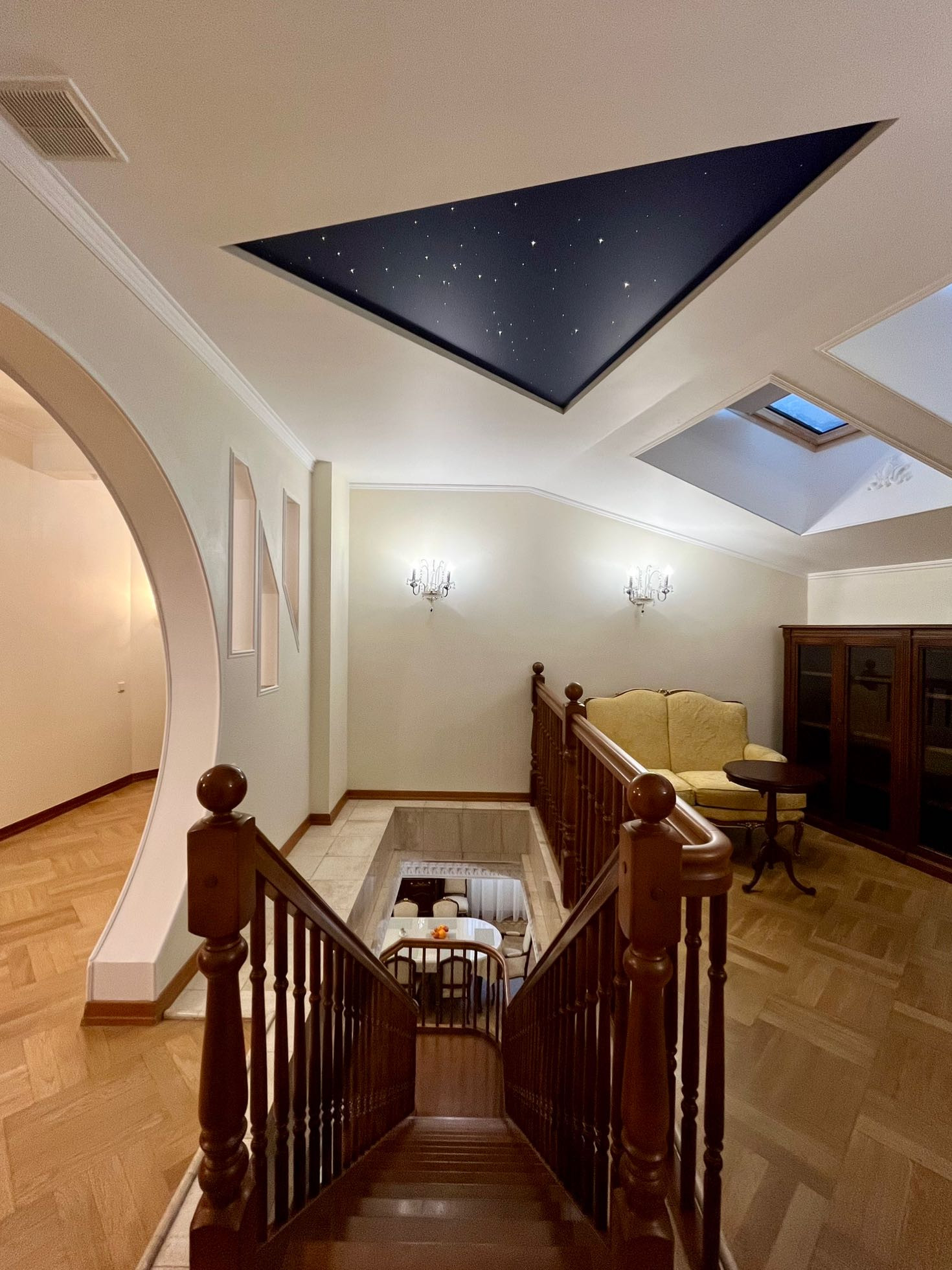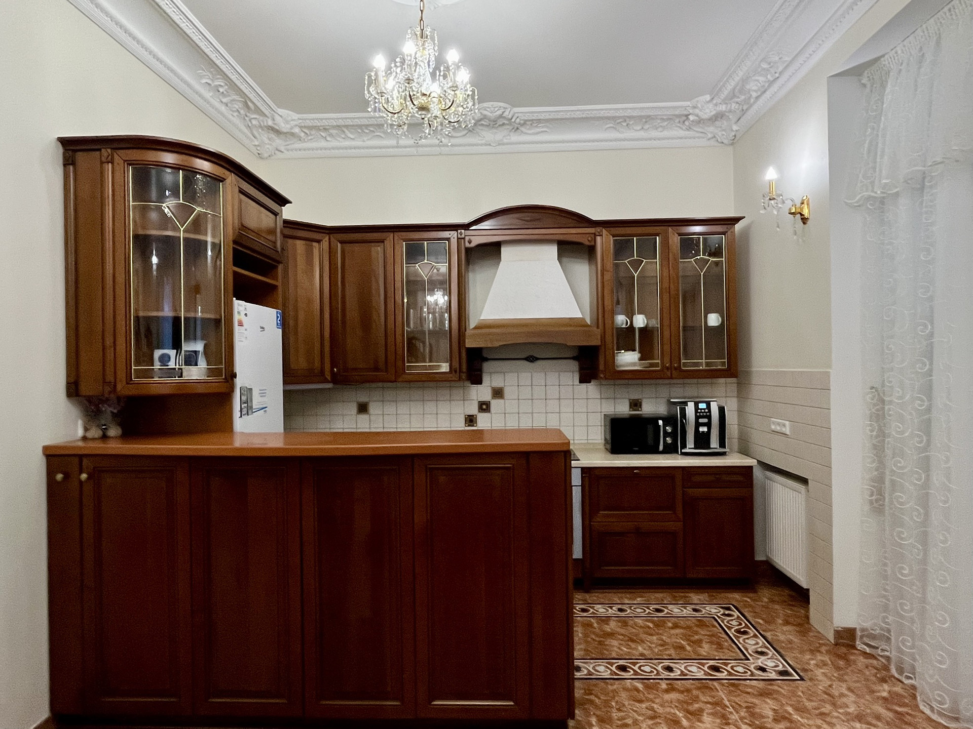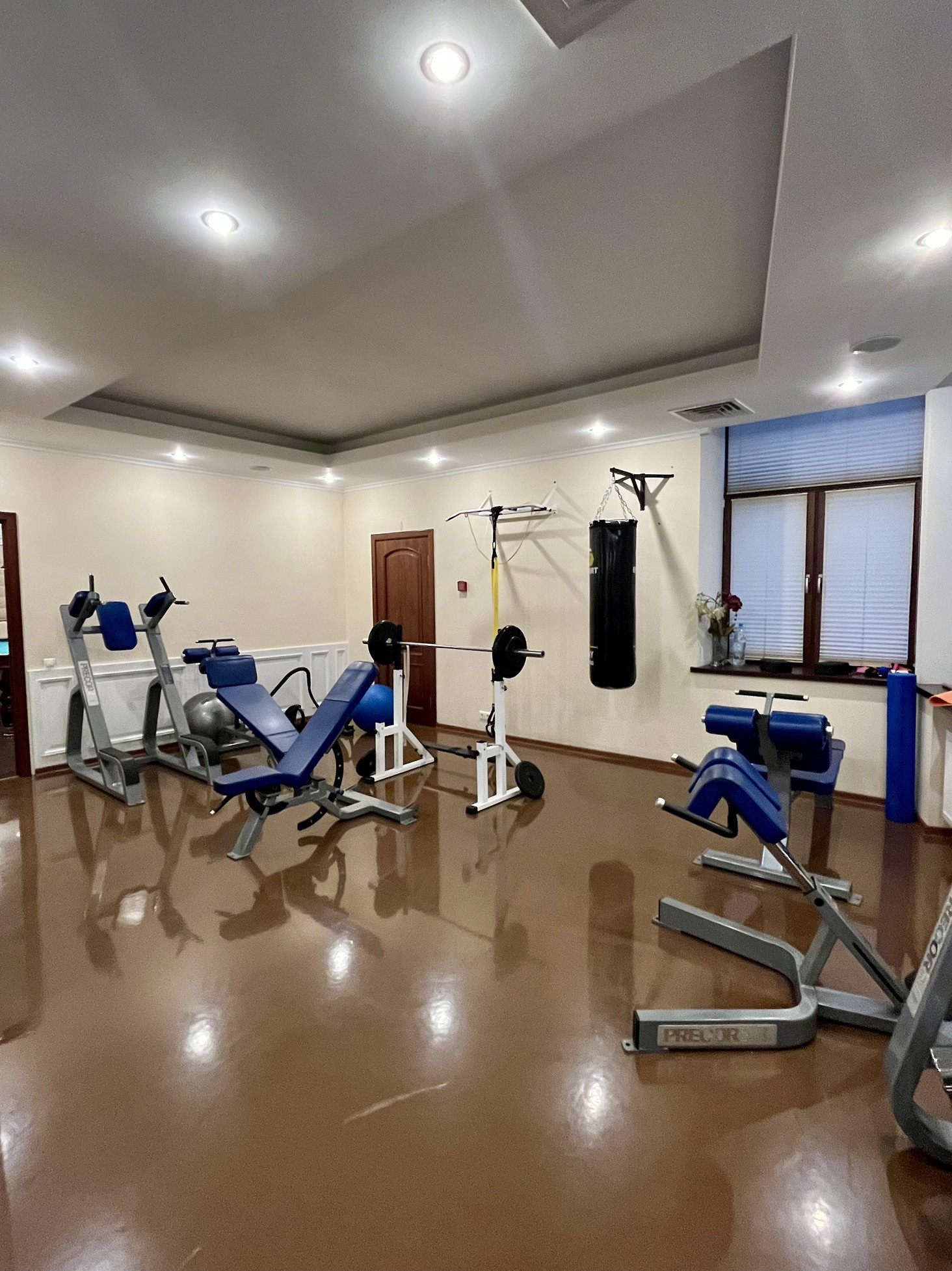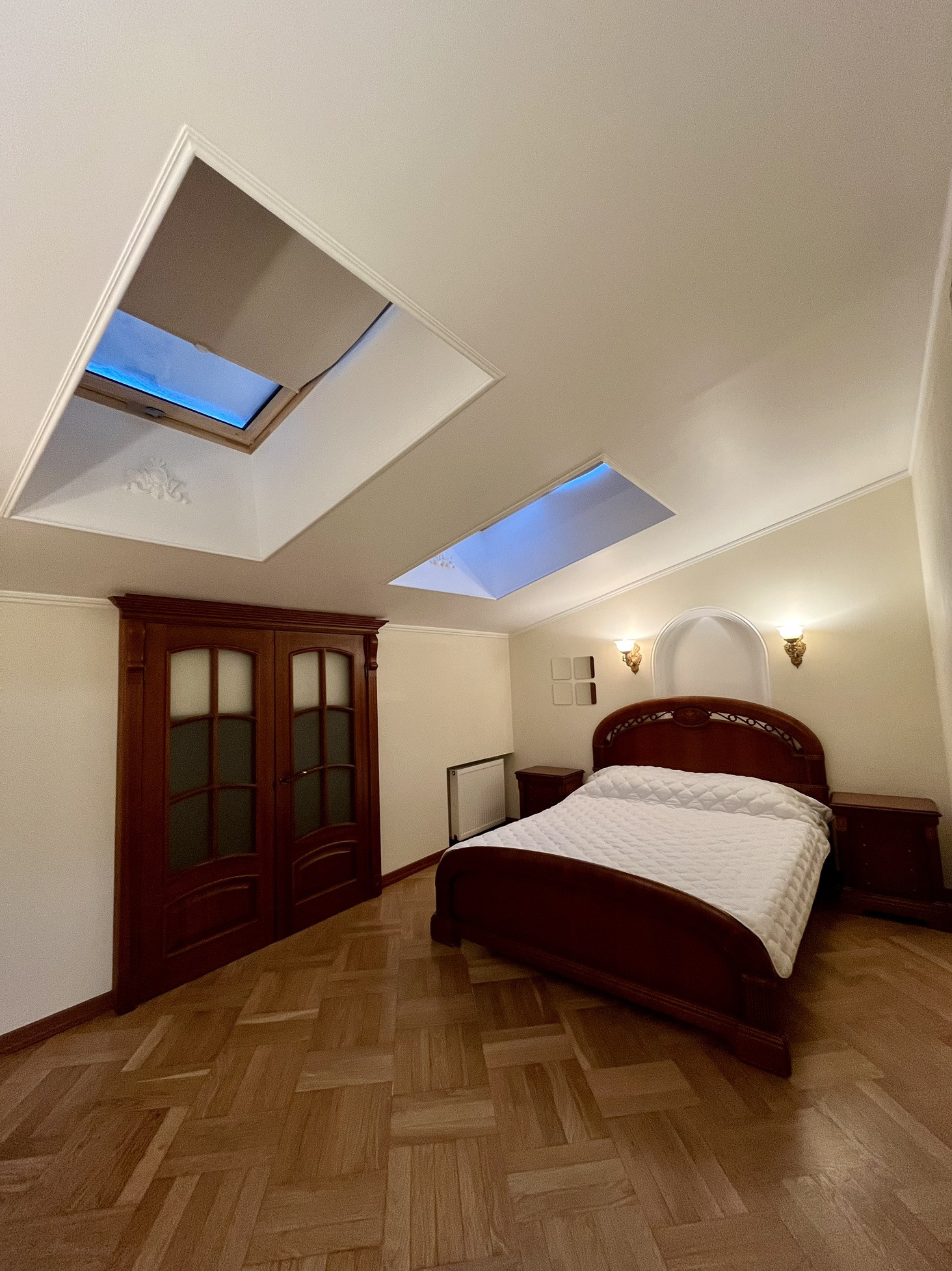 Выполнен дизайнерский ремонт с использованием ценных пород дерева, установлена итальянская мебель и новая техника.